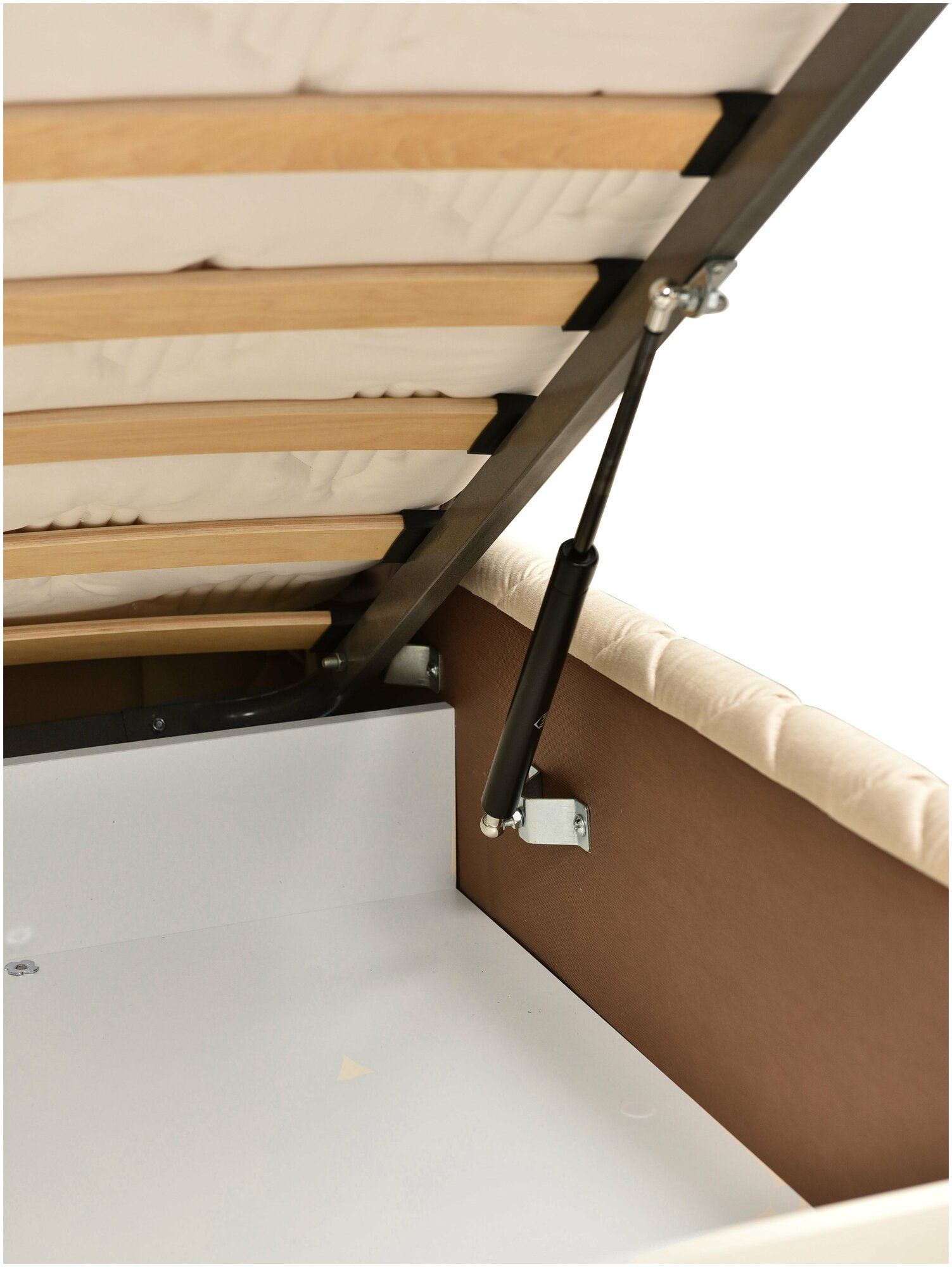 Парящая двуспальная кровать 160х200 см Престиж, подъемный механизм, усиленные ламели, высокие ножки, бархат бежевый, Ами Мебель Беларусь