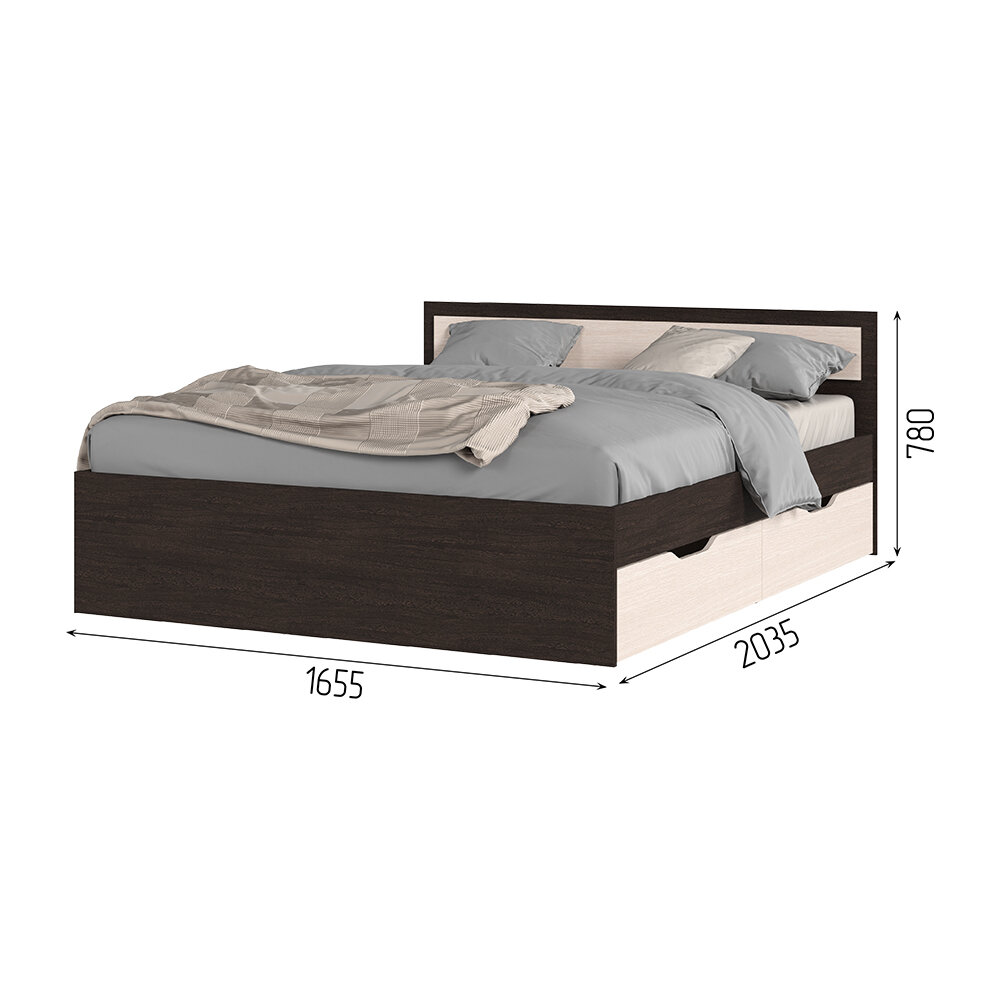 Кровать двуспальная Гармония с выдвижными ящиками для хранения (Виктория) 160х200 см, Дуб белфорт/Венге