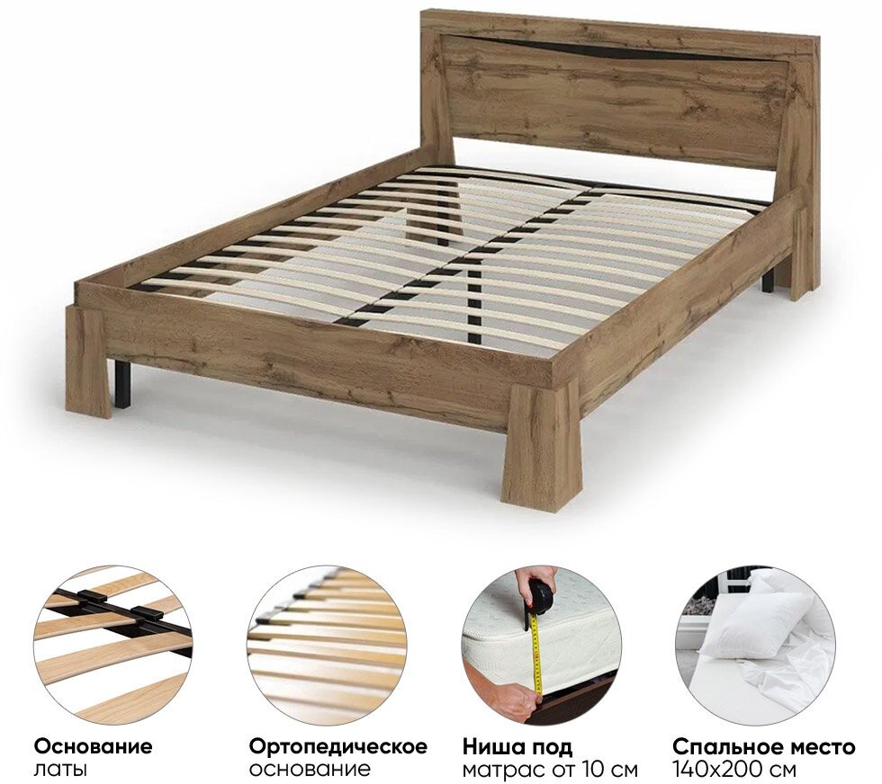 Кровать двуспальная Сальма с ортопедическим основанием 140x200 см, Белый глянец/Дуб анкор светлый