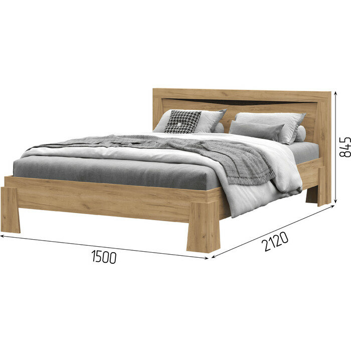 Кровать КР02, Даллас, 1,8х2,0, фасад МДФ Софт графит/ корпус ЛДСП Дуб Каньон