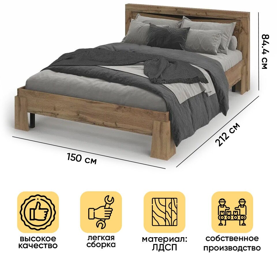 Кровать "Валенсия" КР 013 (1.44*0.85*2.06) с жестким настилом. дуб анкор светлый