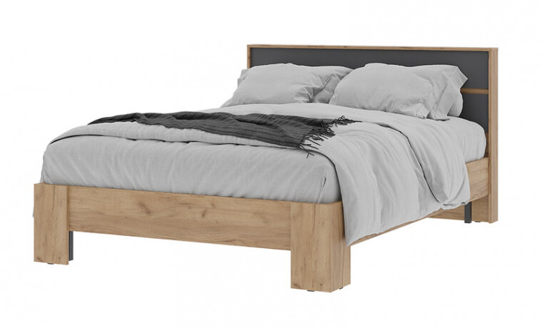 Кровать 1.6х2.0 двухспальная с основанием серый графит/дуб крафт золото ЛДСП/ДСП