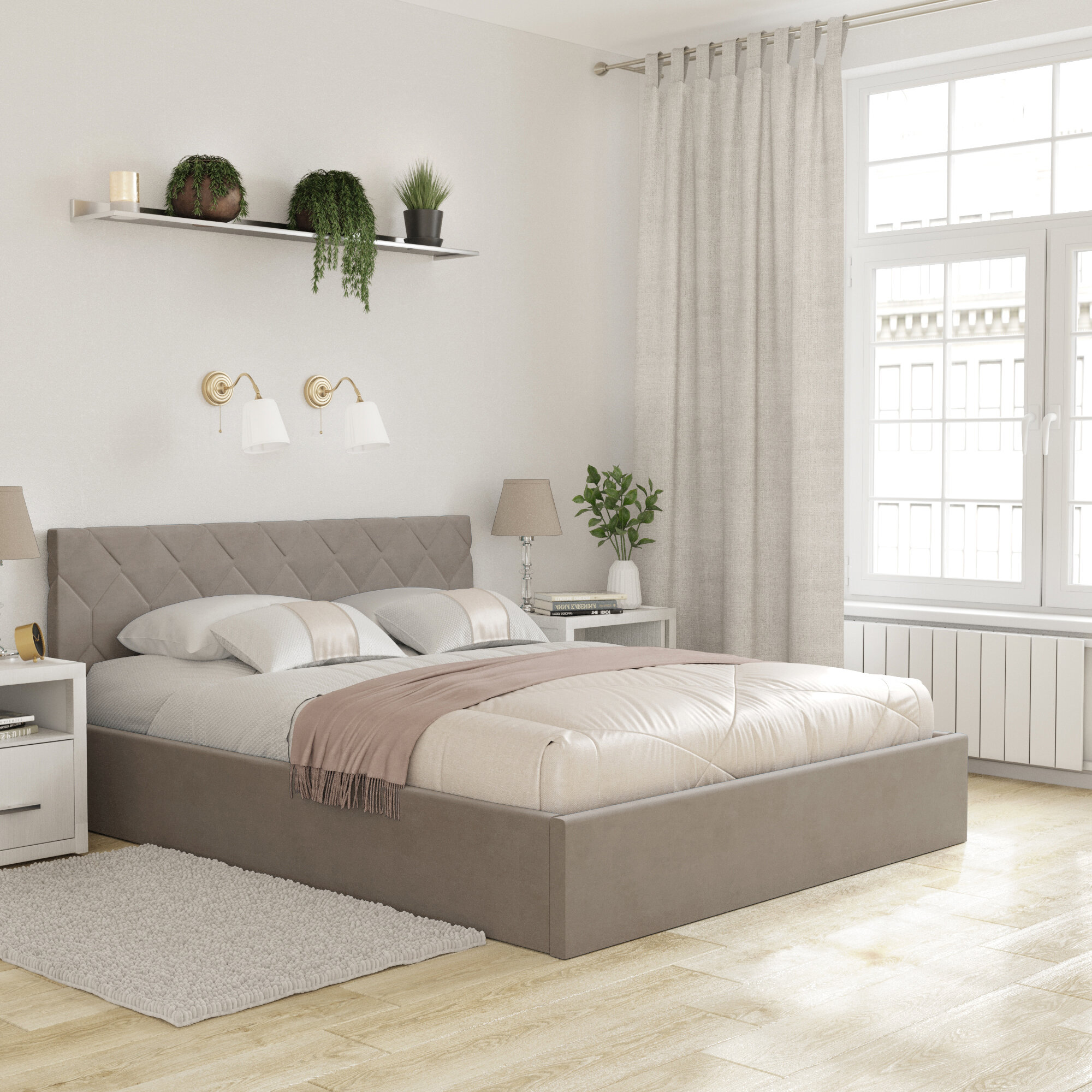 Кровать двуспальная Техас 160х200 с подъемным механизмом с ортопедическим основанием и ящиком для белья, велюр бежевый