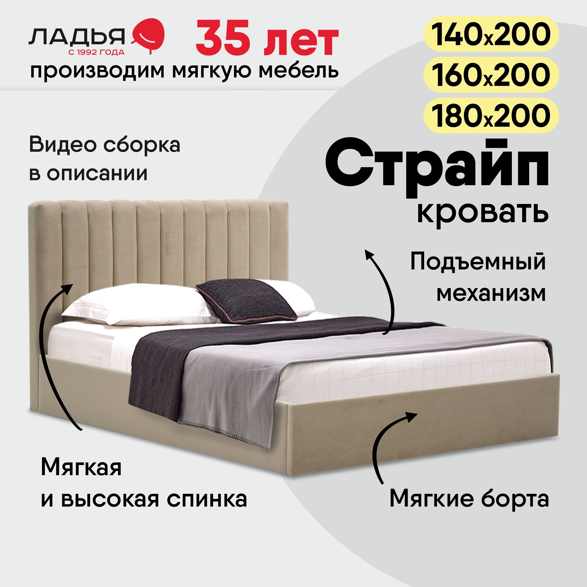 СохранитьДвуспальная кровать Страйп 160х200 с подъемным механизмом, Ладья, с мягким изголовьем для дома и спальни, ортопедическое основание, ящик для белья, California 102 интересное: