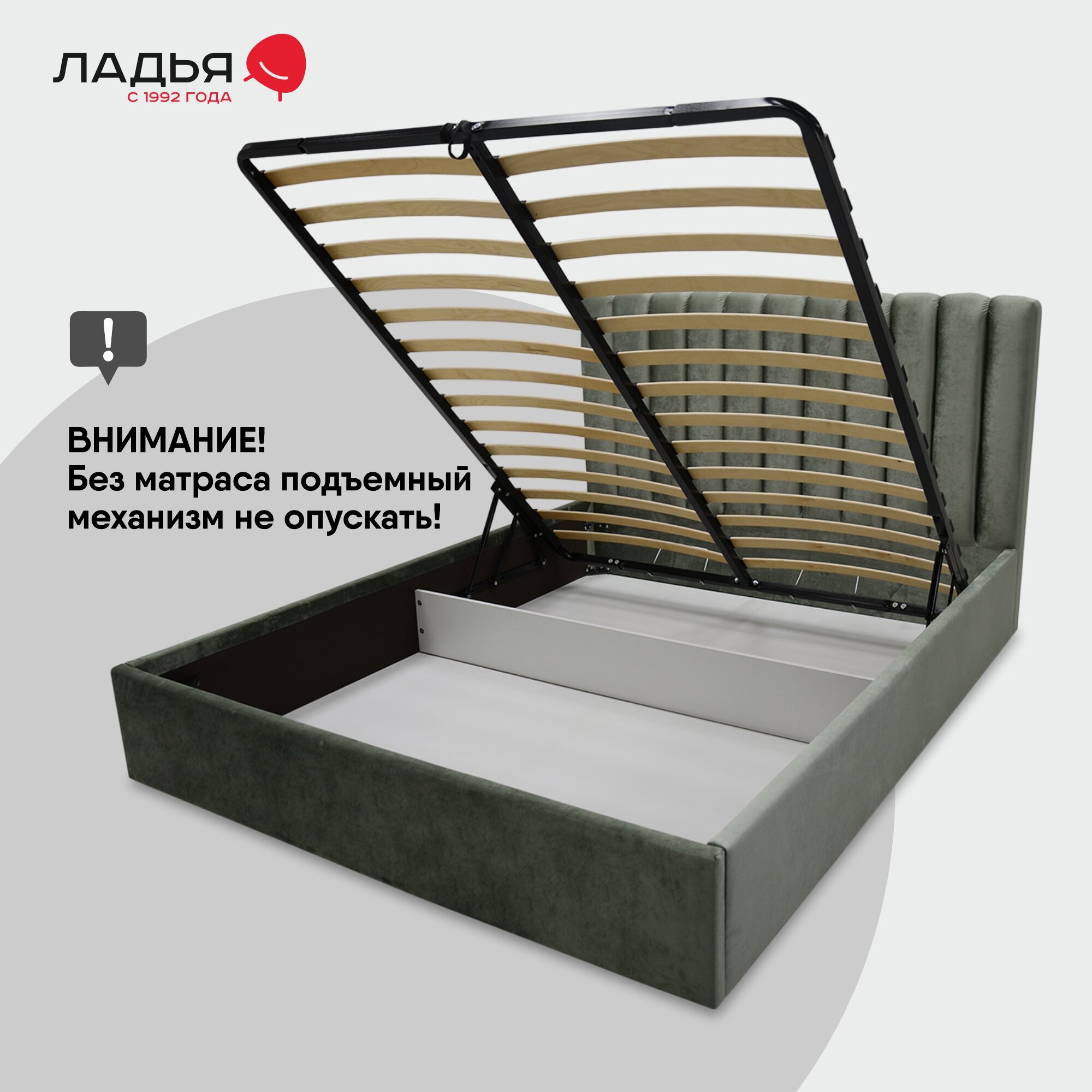 Двуспальная кровать Страйп 160х200 с подъемным механизмом, Ладья, с мягким изголовьем для дома и спальни, ортопедическое основание, ящик для белья, Сonfetti Olive