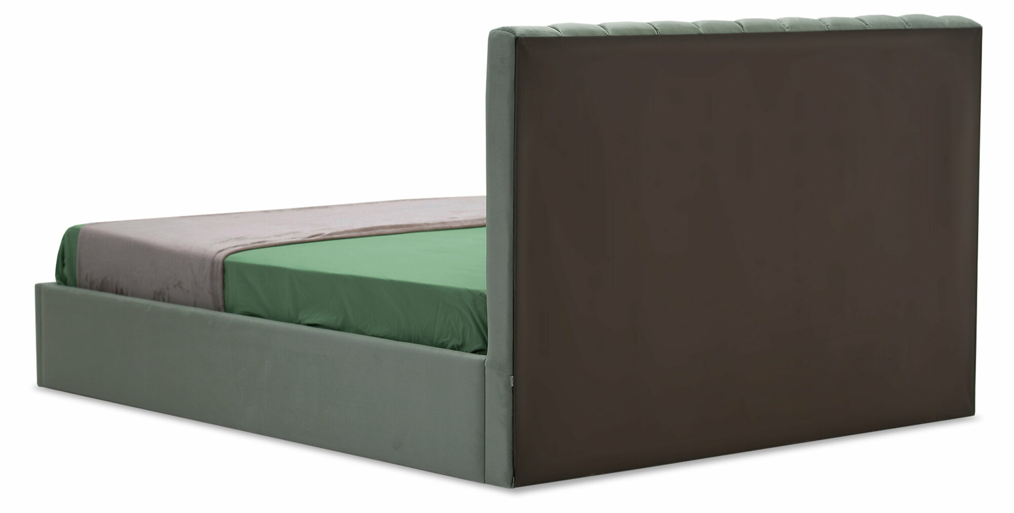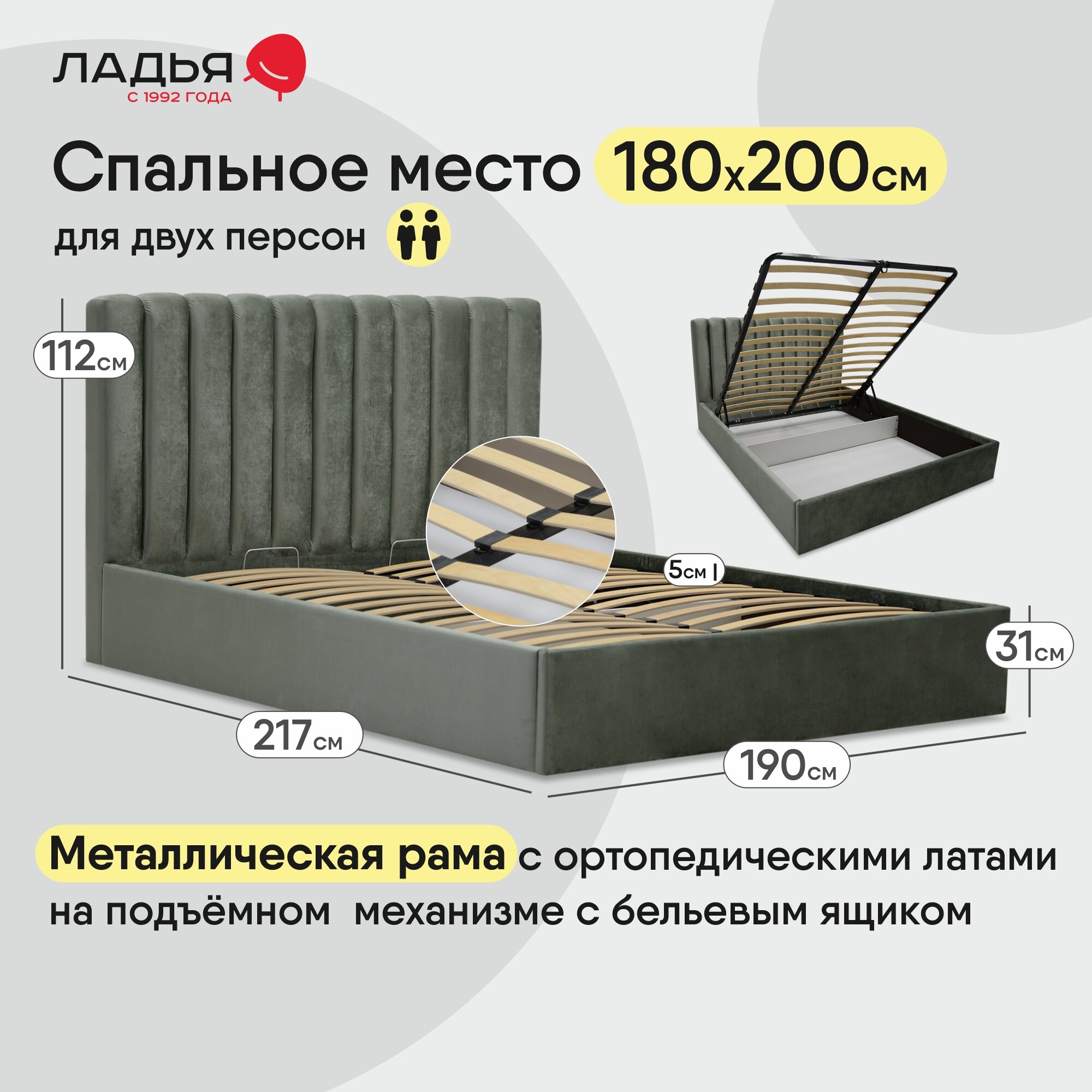Двуспальная кровать Страйп 180х200 с подъемным механизмом, Ладья, с мягким изголовьем для дома и спальни, ортопедическое основание, ящик для белья, Сonfetti Olive