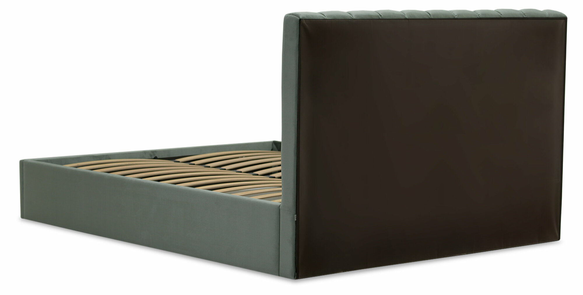 Двуспальная кровать Страйп 160х200 с подъемным механизмом, Ладья, с мягким изголовьем для дома и спальни, ортопедическое основание, ящик для белья, Сonfetti Olive