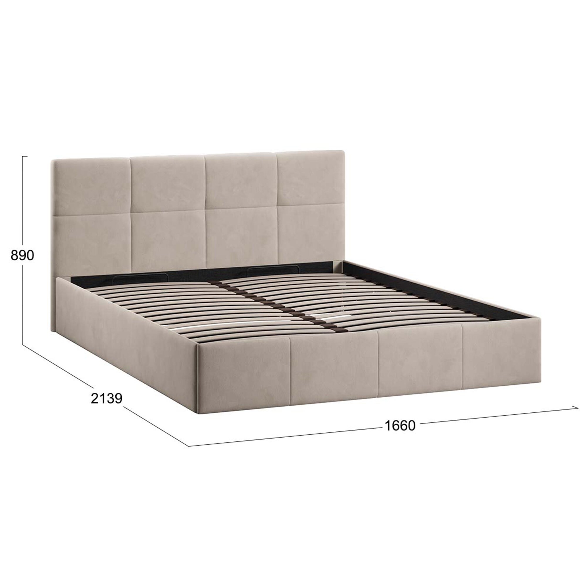 Кровать двуспальная ТриЯ 160х200 с подъемным механизмом, Мона, Велюр Confetti Cream