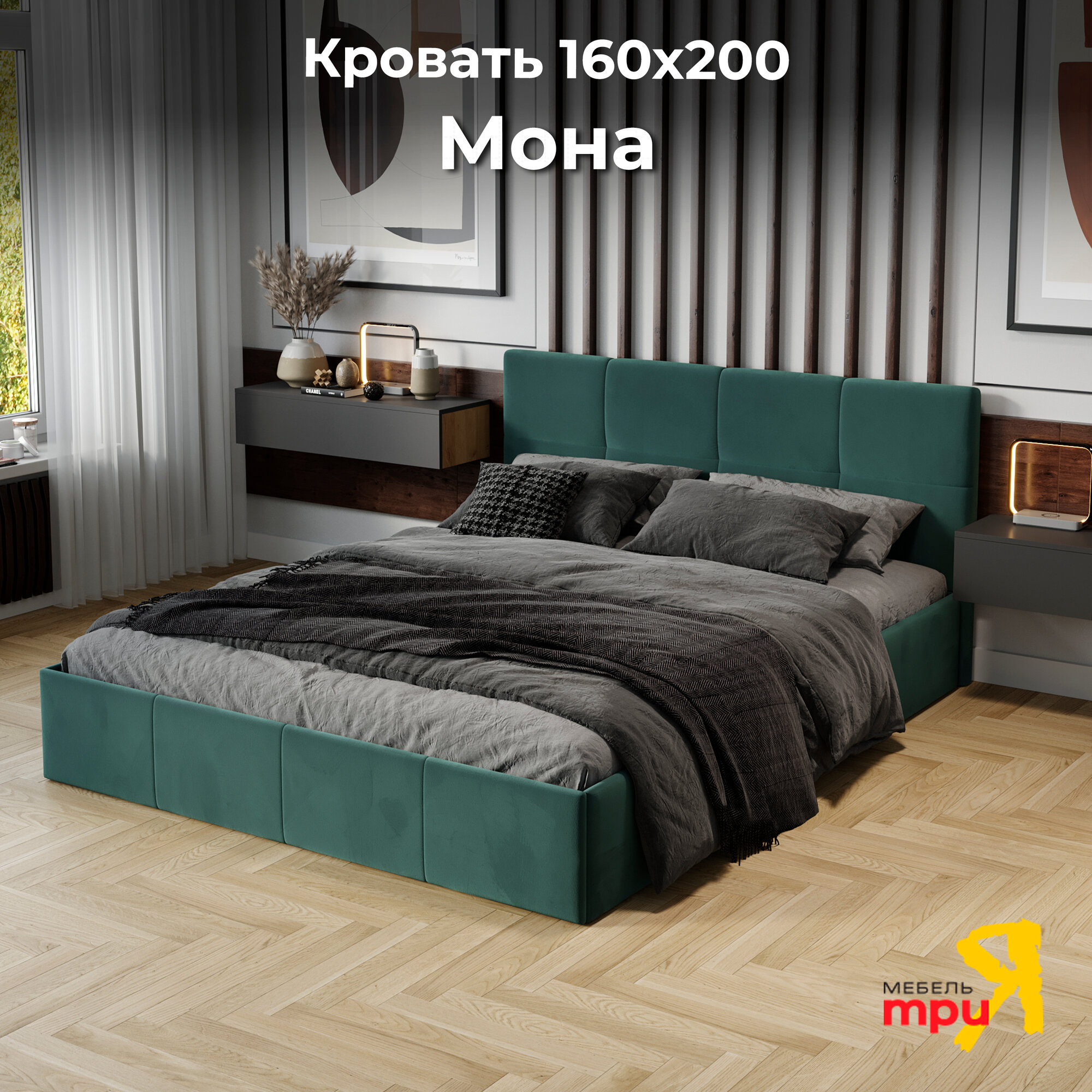 Кровать двуспальная ТриЯ 160х200 с подъемным механизмом, Мона, Велюр Confetti Izumrud