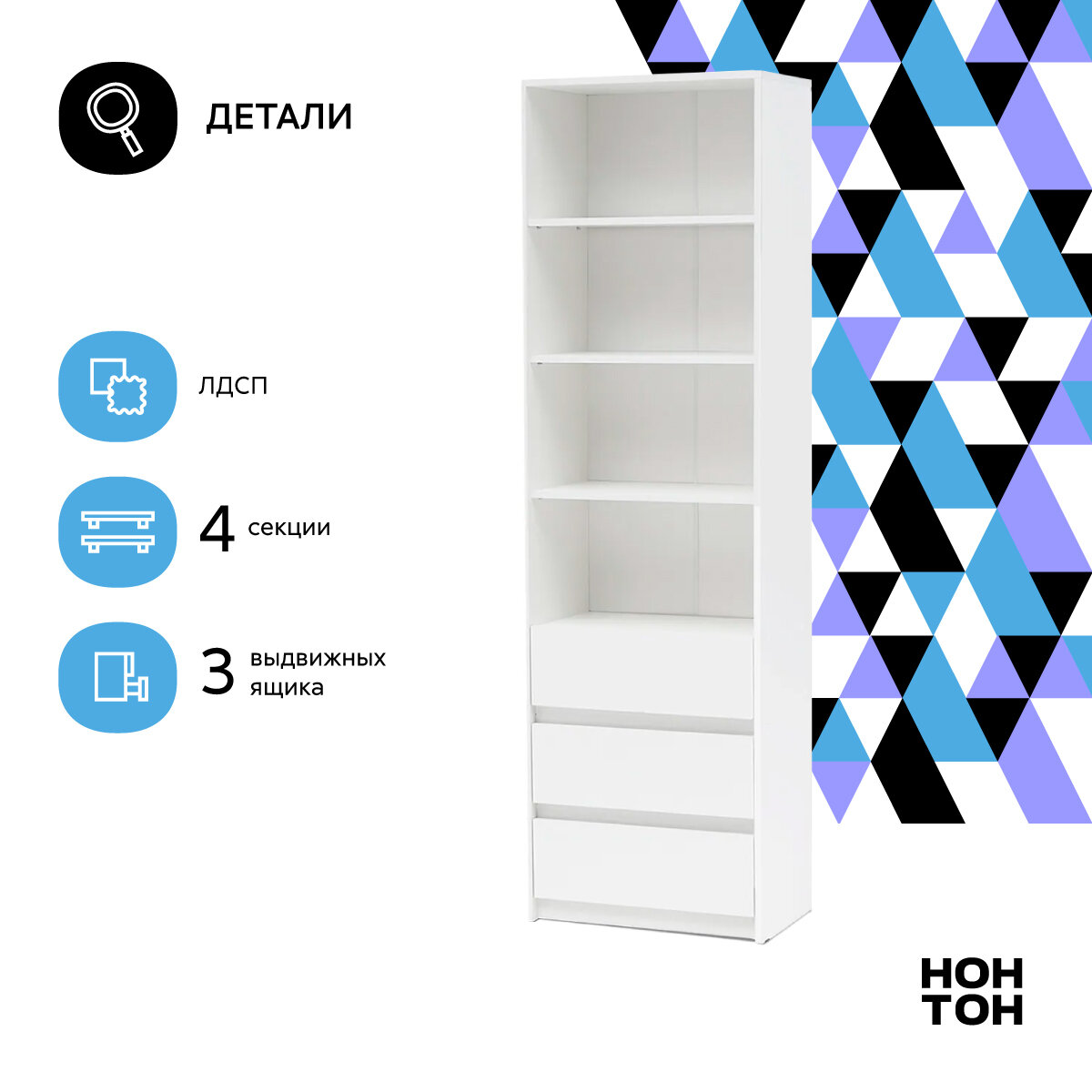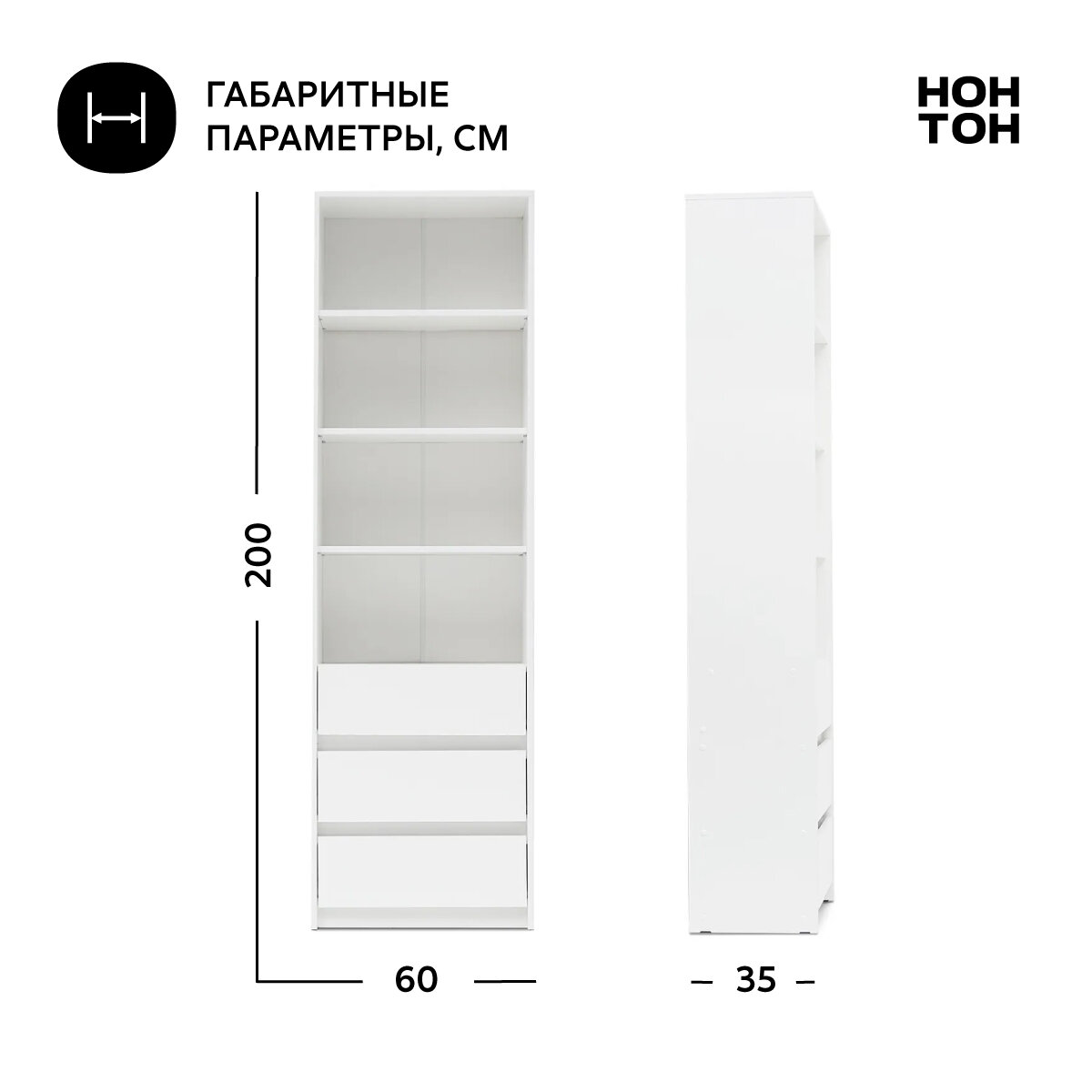 Стеллаж с ящиками Нонтон Айден белый 60x35x200 см интересное: