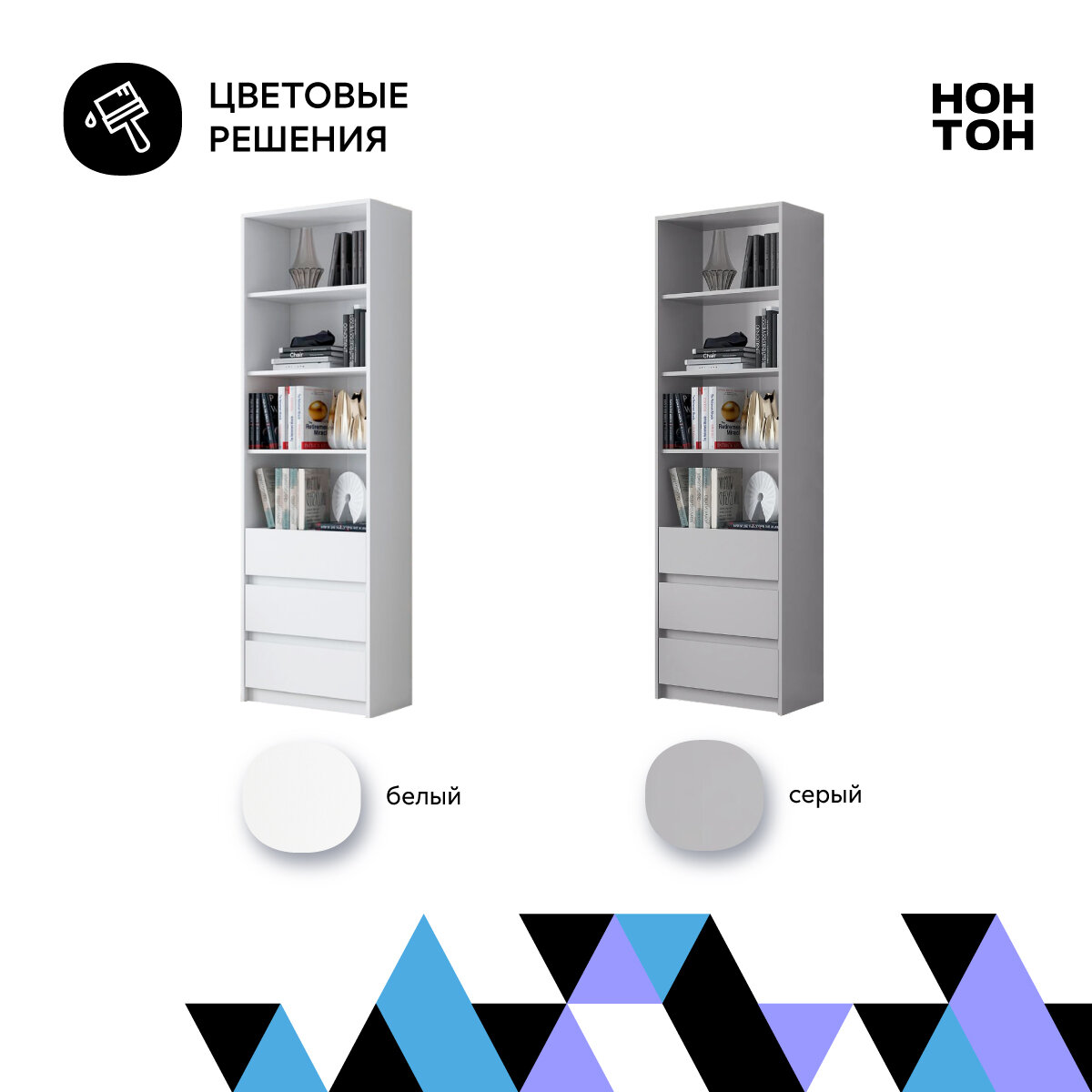Стеллаж для книг с ящиками Нонтон Айден, серый, 60 см