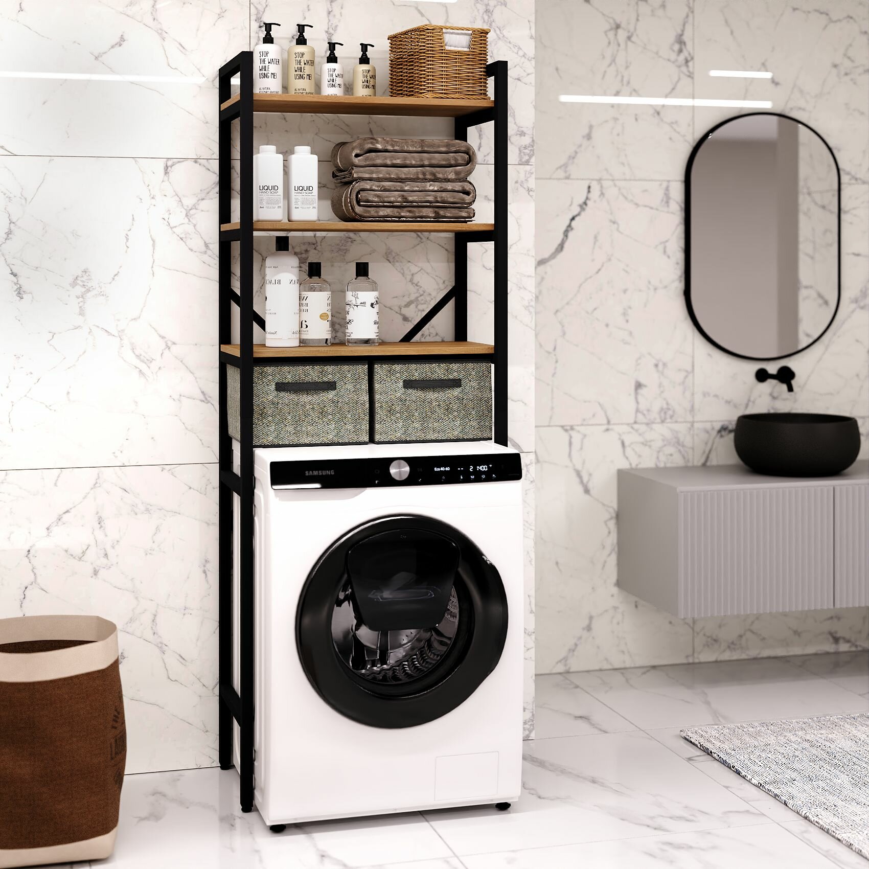 Стеллаж над стиральной машиной в ванную ARIEL лофт (68х34х180см) Черный Оникс