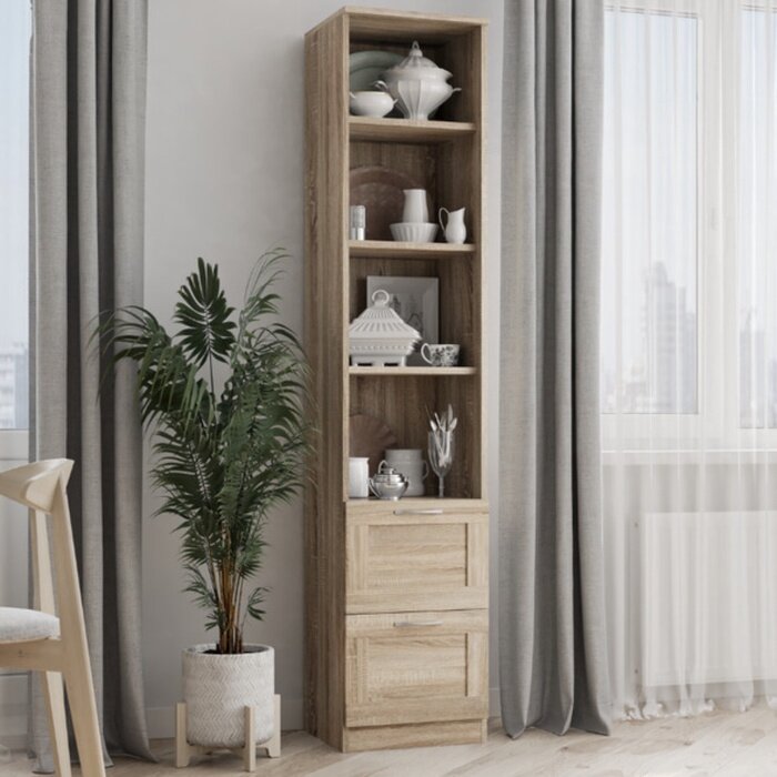 Стеллаж сириус узкий, с двумя ящиками и четырьмя полками, ДСП, цвет Дуб Сонома 2.02.07.140.3