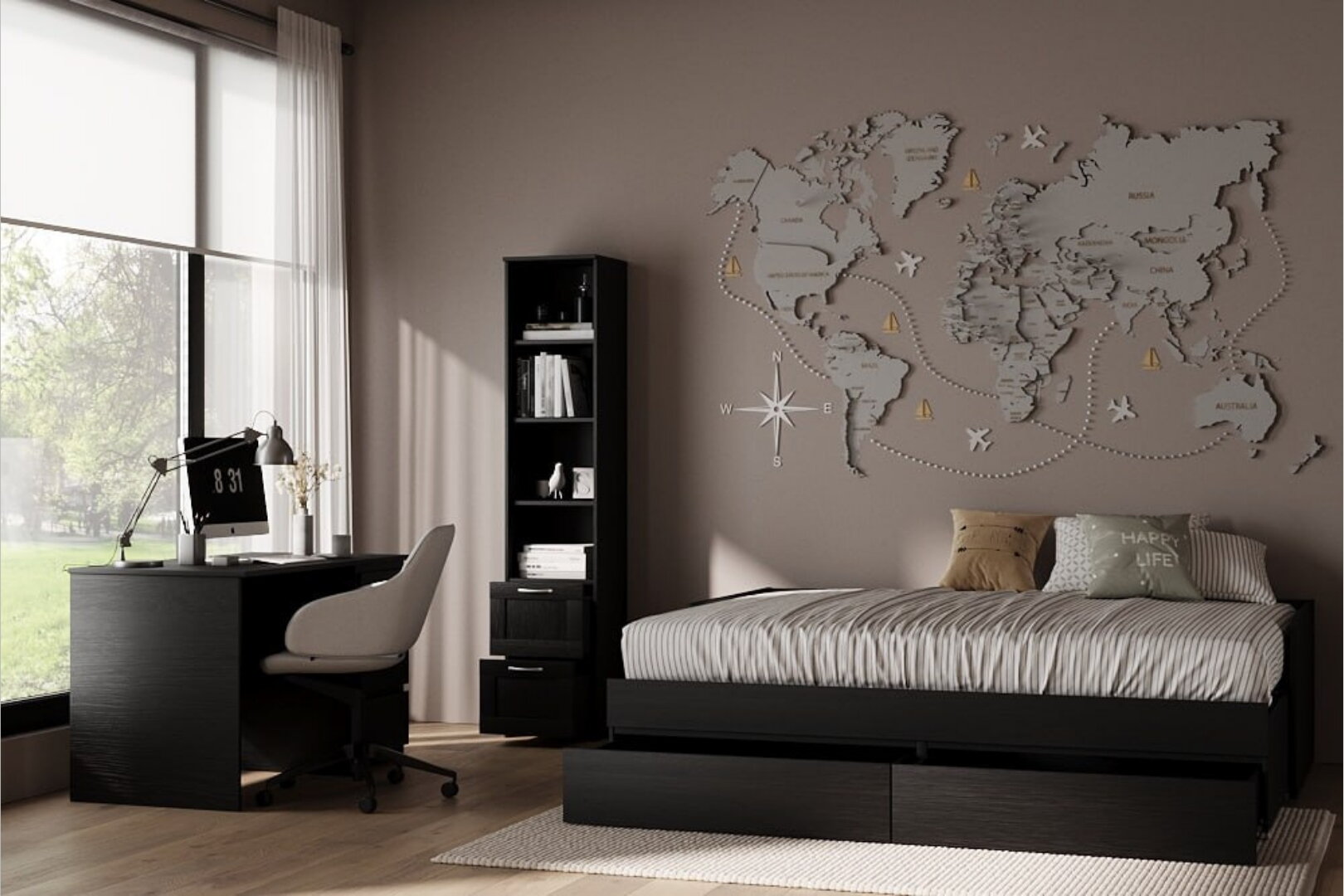 Стеллаж ГУД ЛАКК Сириус, 2 ящика, 39х34х190 см, черный, дуб венге