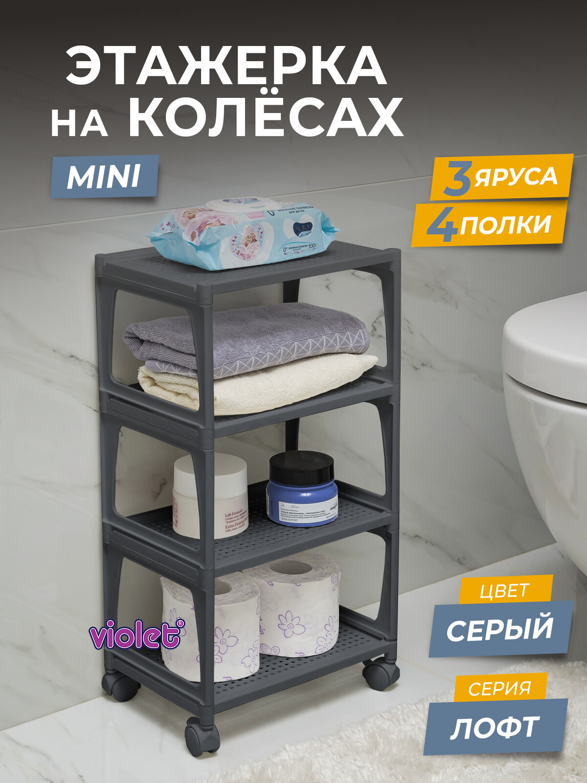 Купить Этажерка для хранения на колесах маленькая Лофт Mini, цвет серый