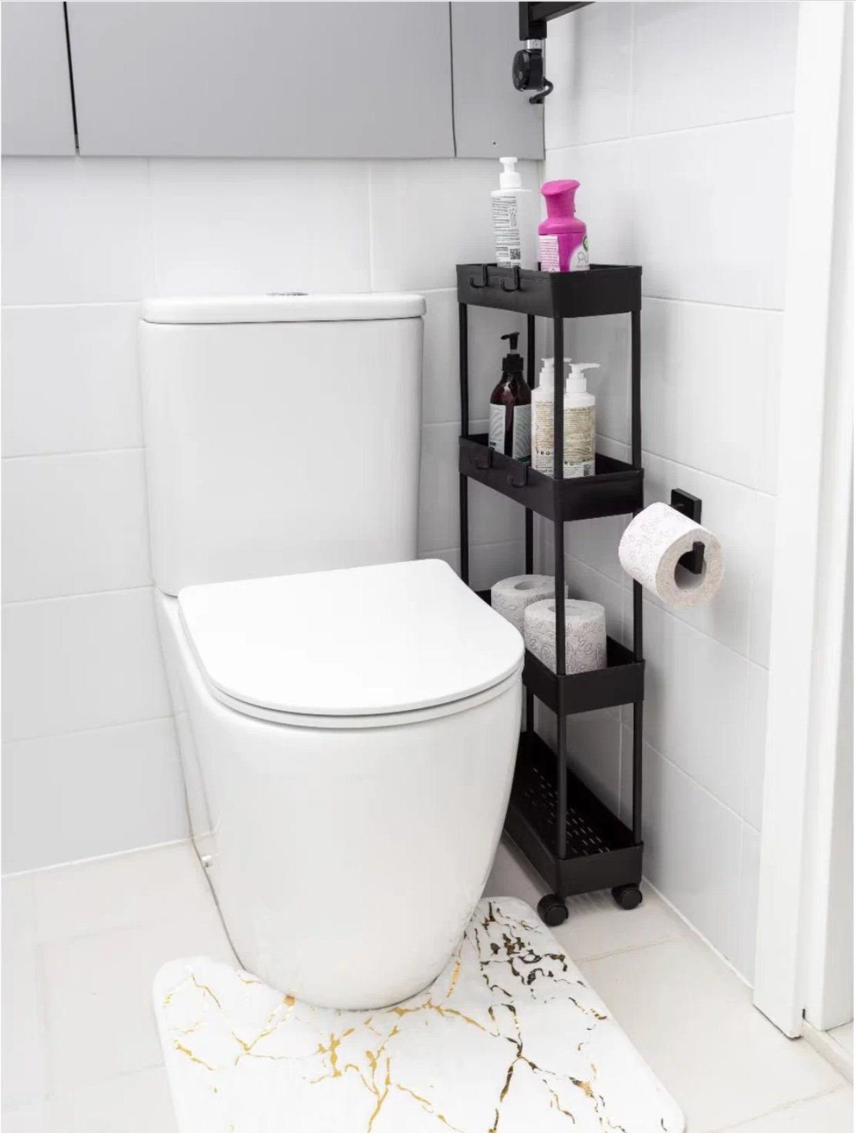 Купить Этажерка узкая на колесиках / Этажерка универсальная для дома , ванной , кухни /черный