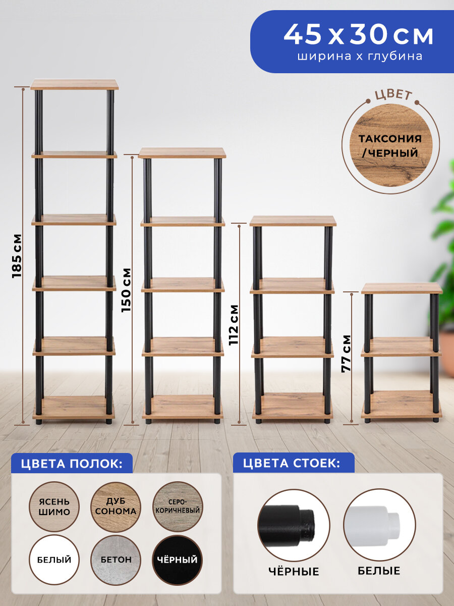 Стеллаж деревянный GASTRORAG 1450/5, Этажерка напольная, полка ЛДСП размеры 45 х 30 х 148.5 см