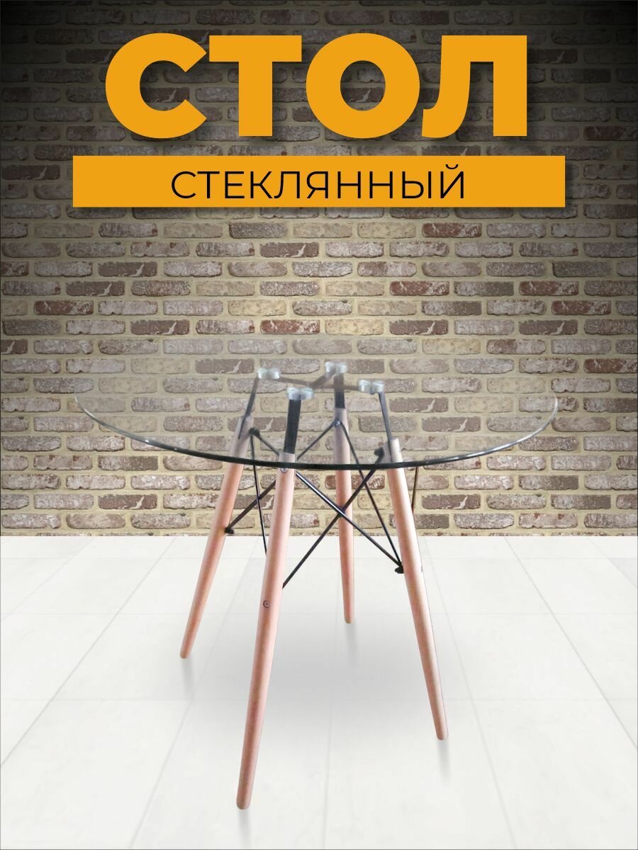Стол кухонный круглый обеденный лофт с деревянными ножками, 80 см стеклянный интересное: