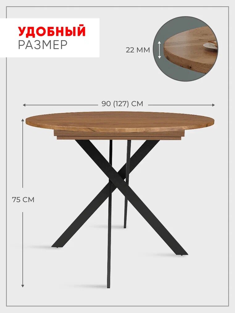 СохранитьСтол кухонный раздвижной круглый 90х75х90, дуб вотан интересное: