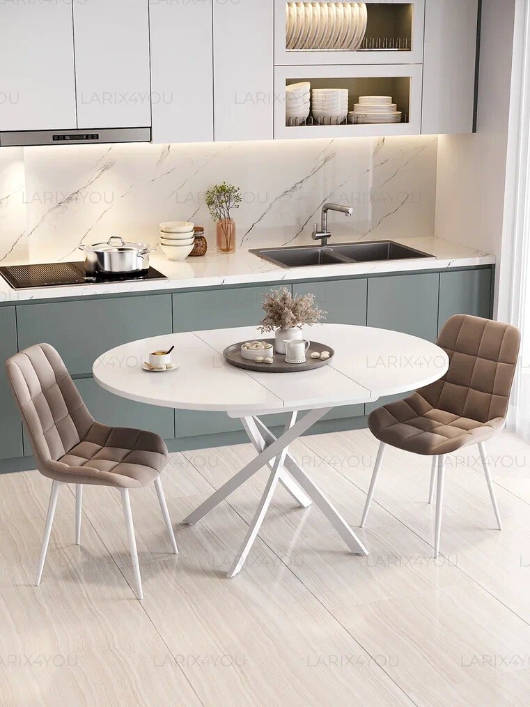 Стол кухонный раздвижной круглый Белый Мрамор матовый, 90х90см