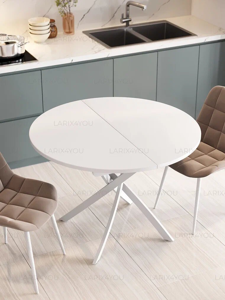 Купить Стол кухонный раздвижной круглый Белый матовый ,90х90см