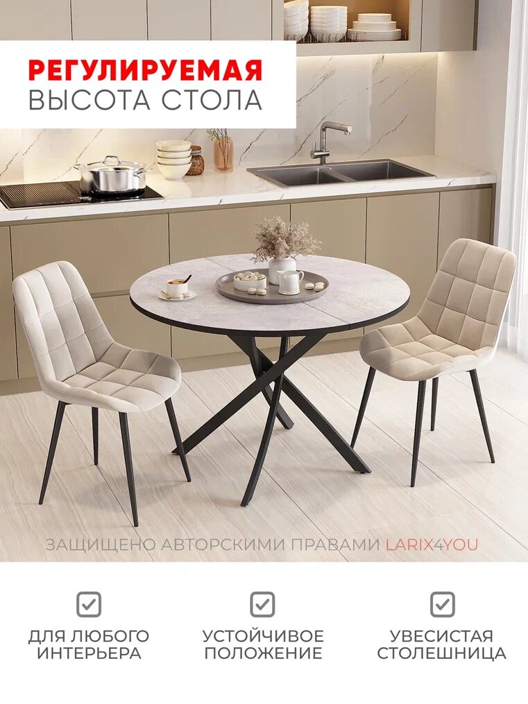 Стол кухонный раздвижной "Larix4you", 90x90, матовый белый, черный муар