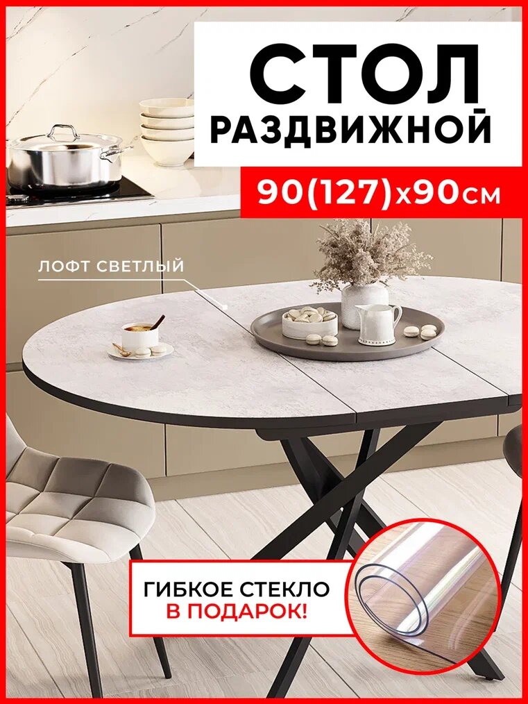 СохранитьСтол кухонный раздвижной круглый Лофт, 90х90см интересное: