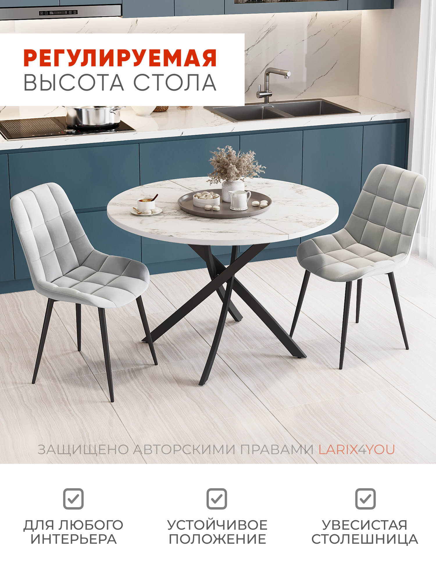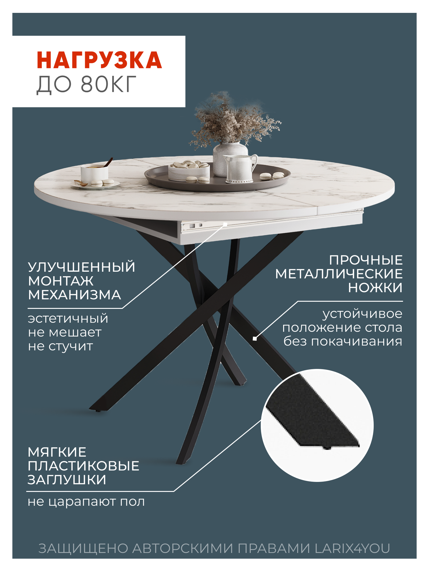 Стол кухонный раздвижной "Larix4you", 90x90, матовый белый, черный муар