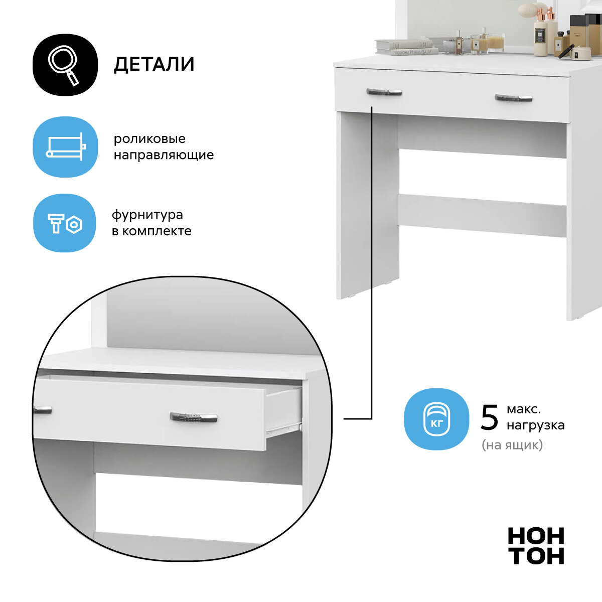 Туалетный стол с зеркалом Нонтон Ронда, белое дерево 80х43.6х144.5 см интересное: