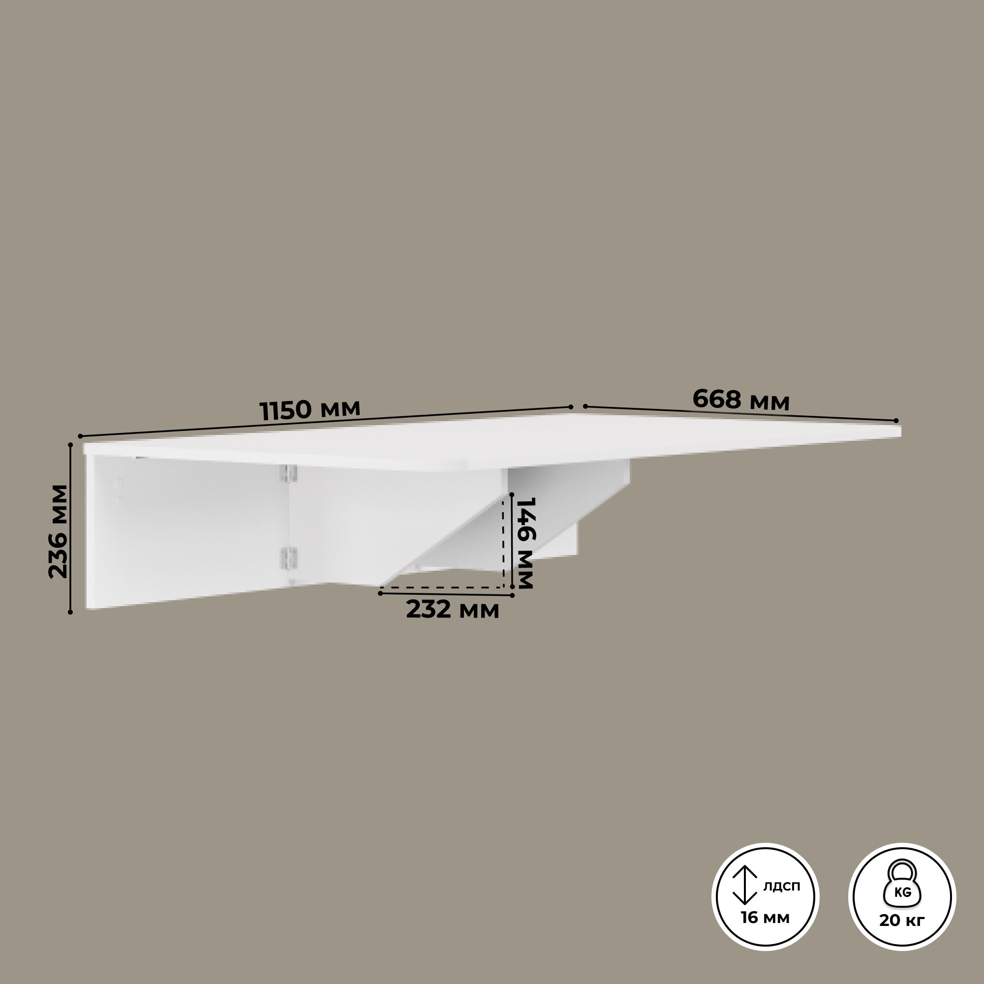 Стол навесной (подвесной) складной откидной кухонный 60x42.4x23.6 трансформер Кео СТМ-900 белый