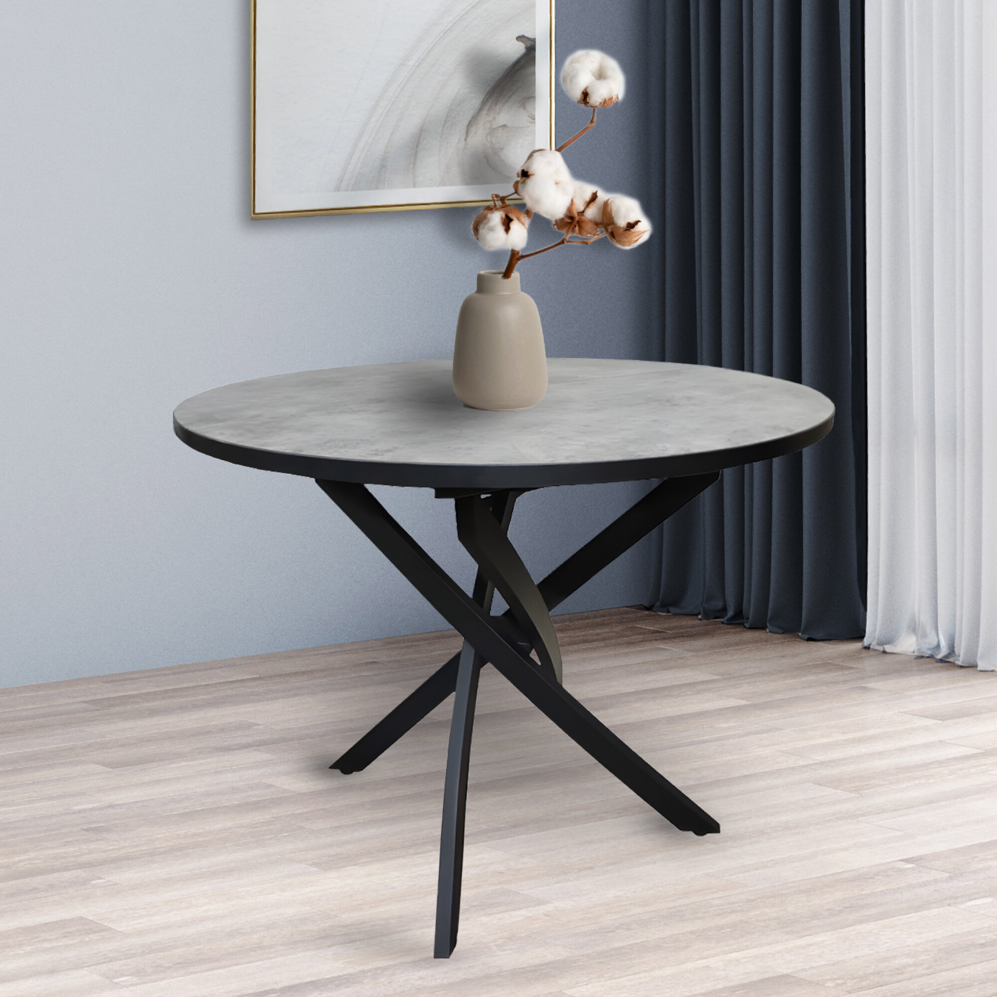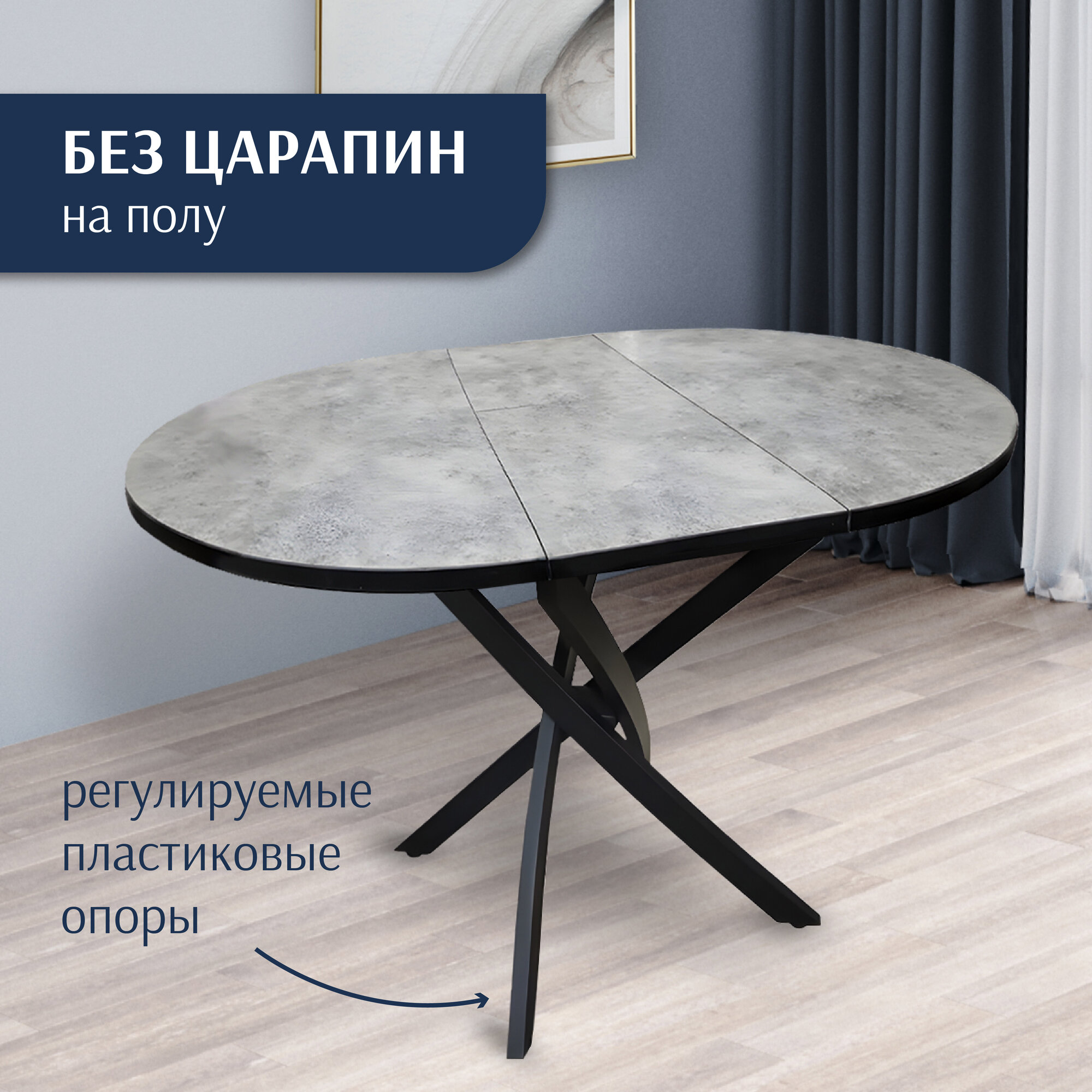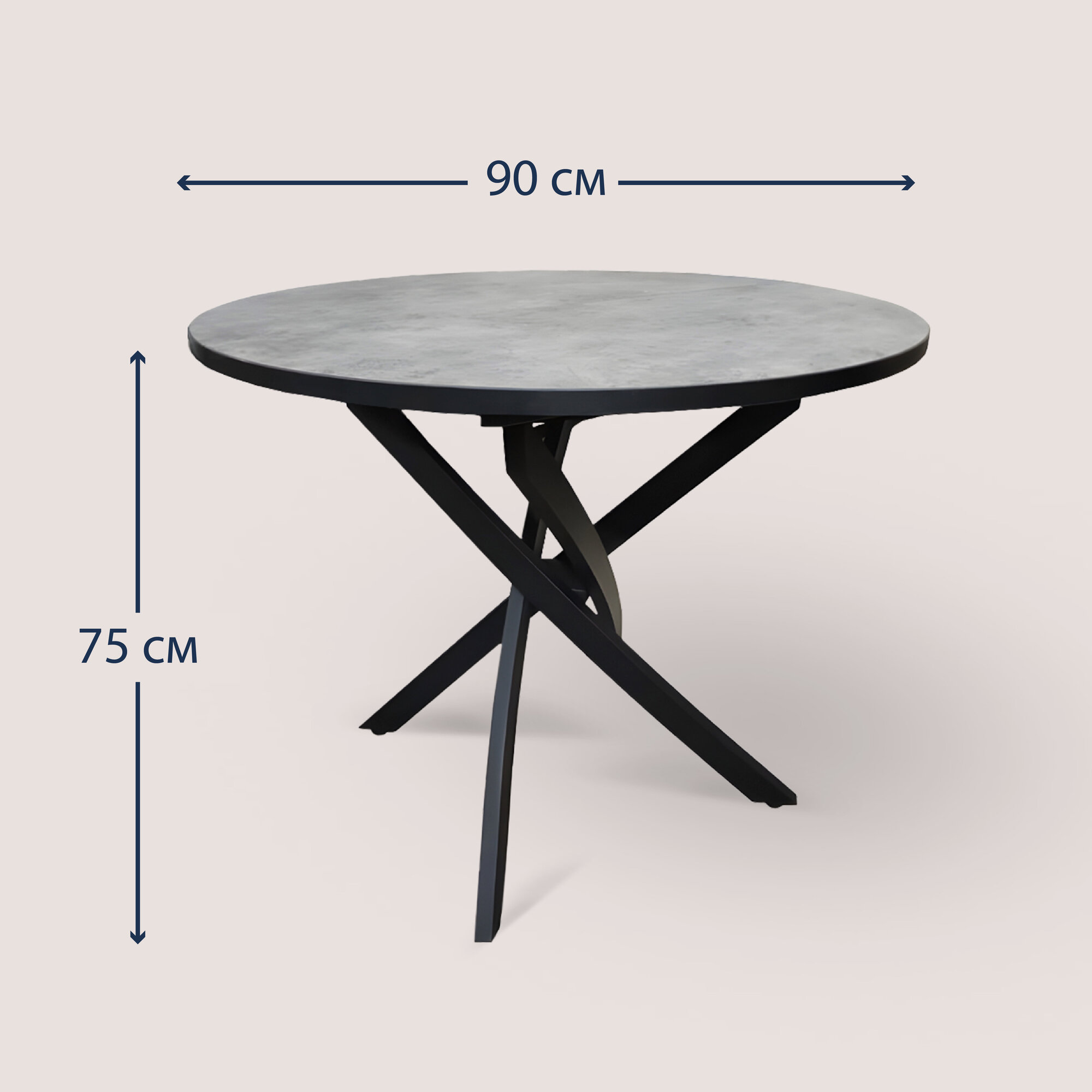 Купить Стол круглый обеденный раздвижной бетон, черный 90(120)х90х75