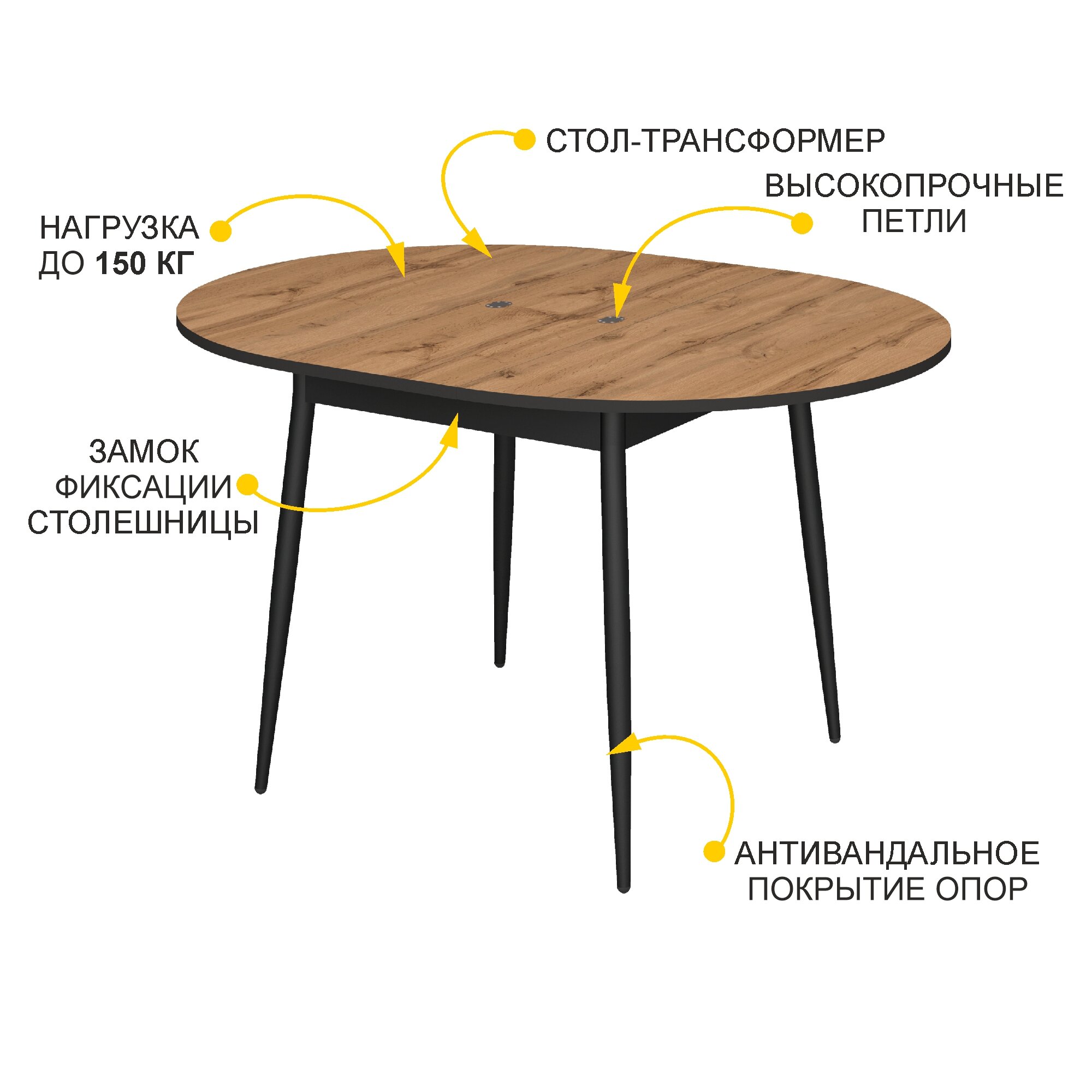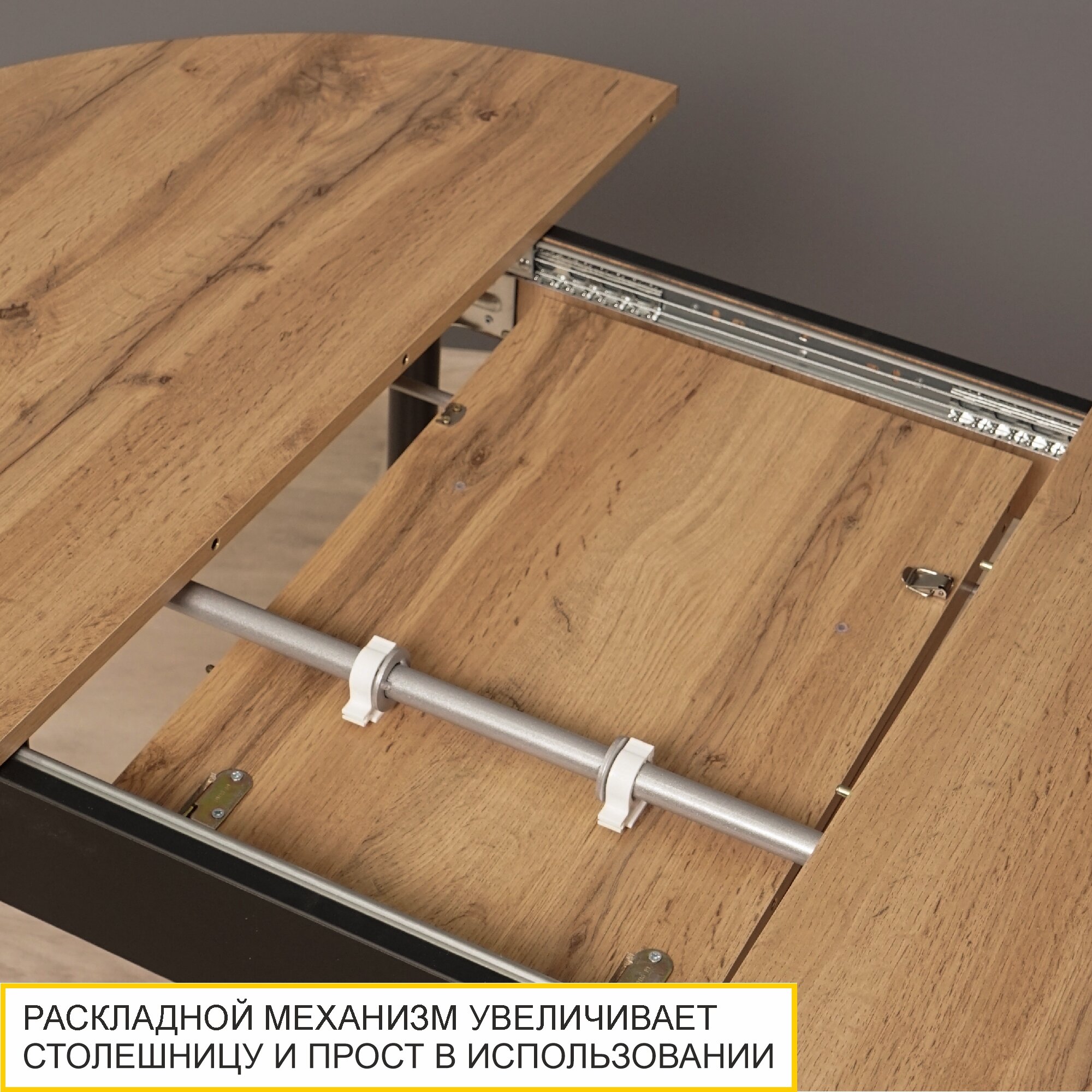 СохранитьСтол обеденный круглый раздвижной Парма 12.1 (07) Дуб Вотан/Черный, 100х100х75 см интересное: