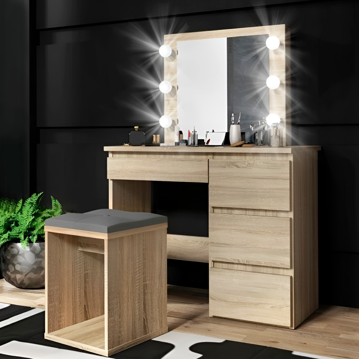 Купить Туалетный столик с зеркалом, подсветкой и ящиками Sura HomeGrad, 900х1360х400, Сонома