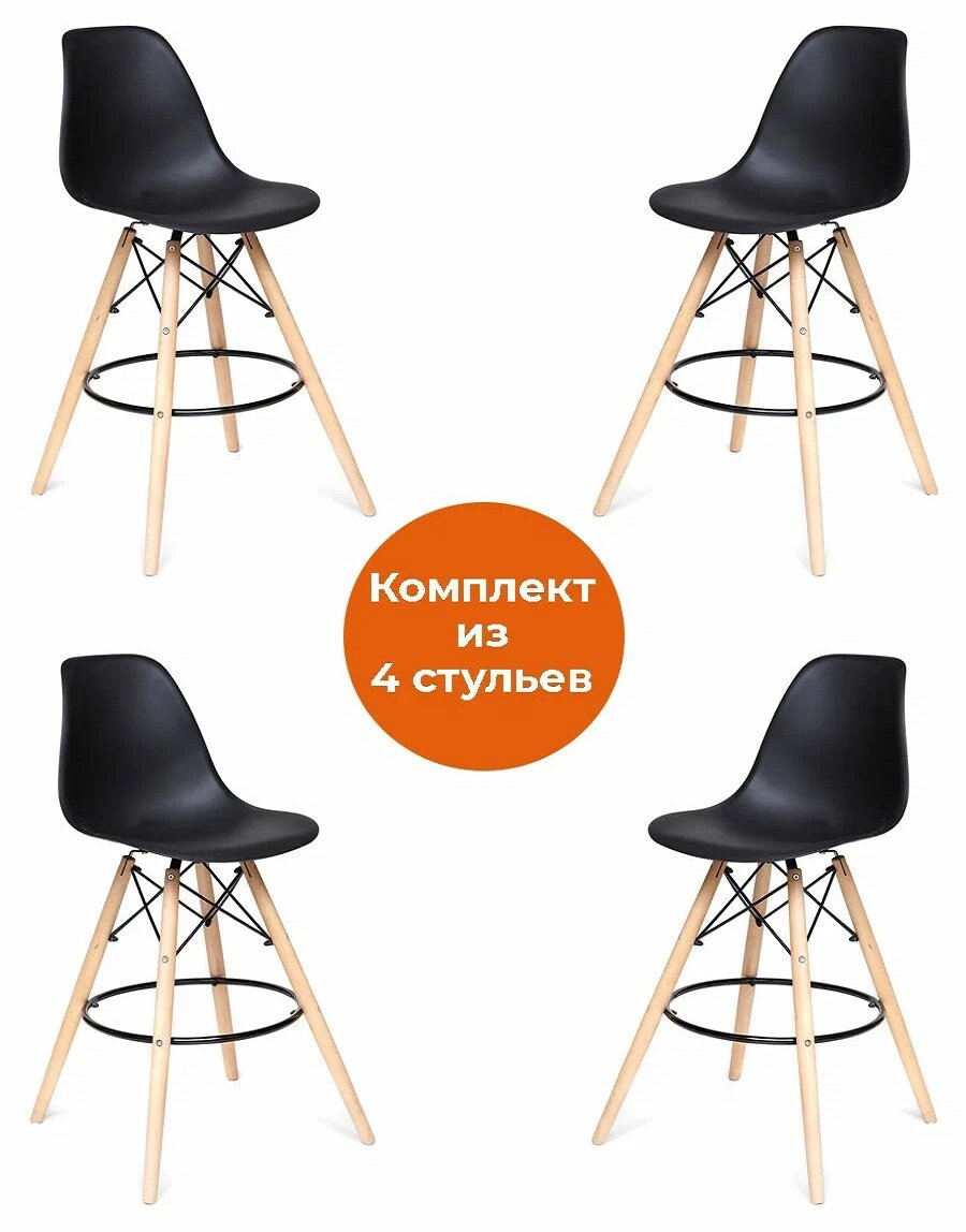 Купить Комплект стульев барных TetChair Cindy Bar Chair (mod. 80-1) 4 шт., дерево бук/металл/пластик, черный/ натуральный