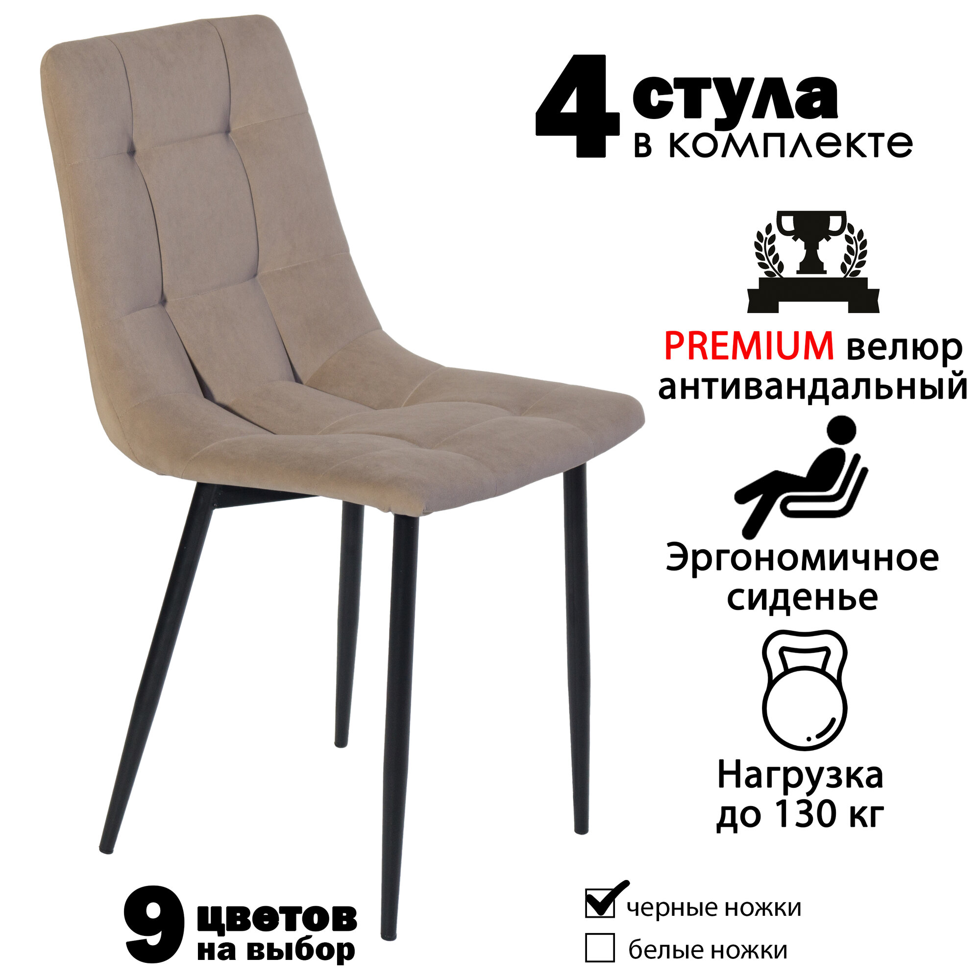 Стул мягкий для кухни, комплект из 4 кухонных стульев чили, велюр, бежевые, черные ножки