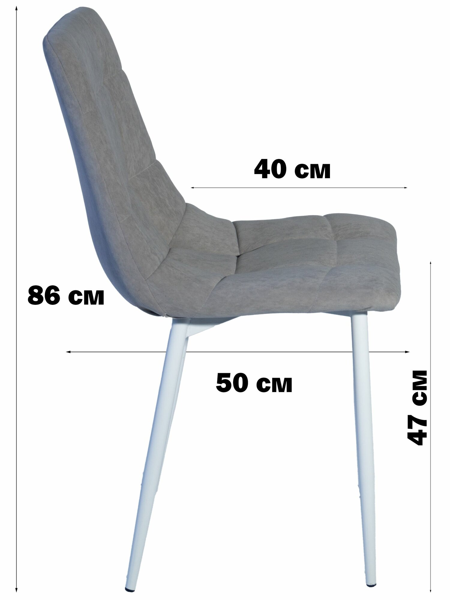 Стул мягкий кухонный, комплект из 2 стульев для кухни чили, велюр, серые, белые ножки