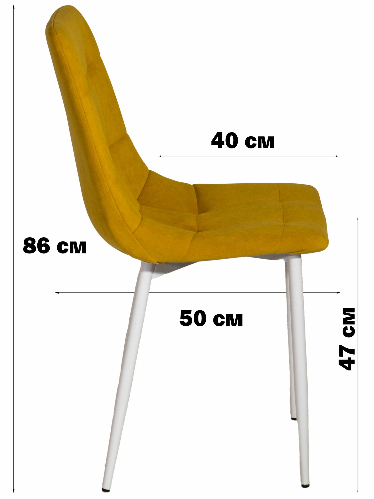 Стул мягкий для кухни, комплект из 2 кухонных стульев чили, велюр, желтые, белые ножки