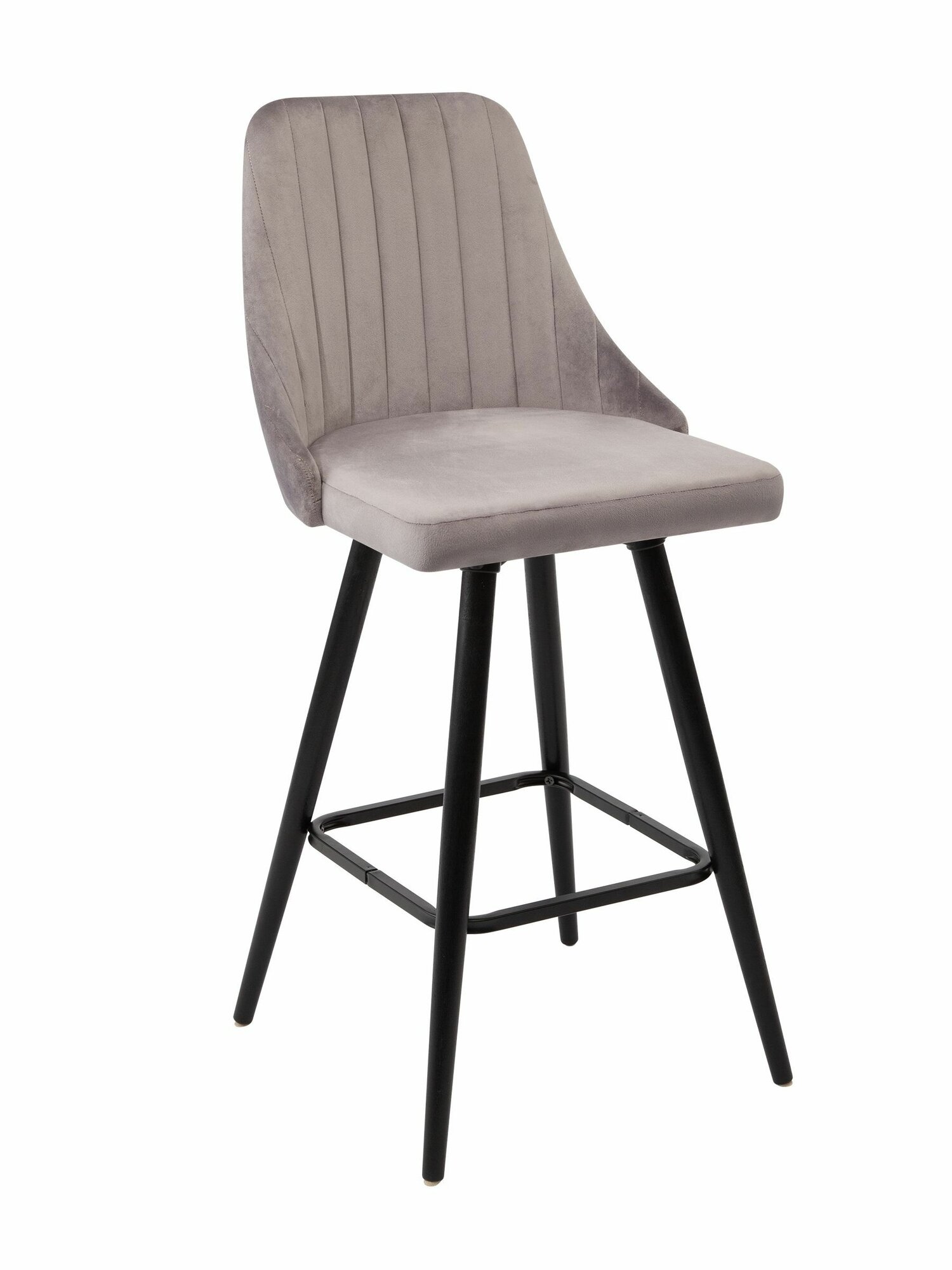 Барные стулья для кухни 2 штуки мягкие Лондон, обеденная группа для дома и гостиной, кухонные стулья со спинкой, высокие ножки, обивка вельвет серый, АМИ мебель Беларусь