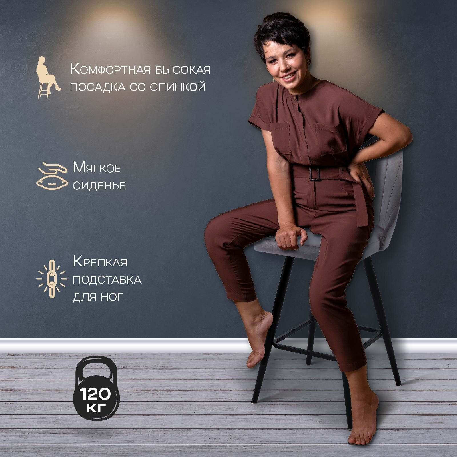СохранитьБарные стулья для кухни 2 штуки Лондон , кухонные стулья со спинкой, обивка вельвет серый, АМИ мебель Беларусь интересное: