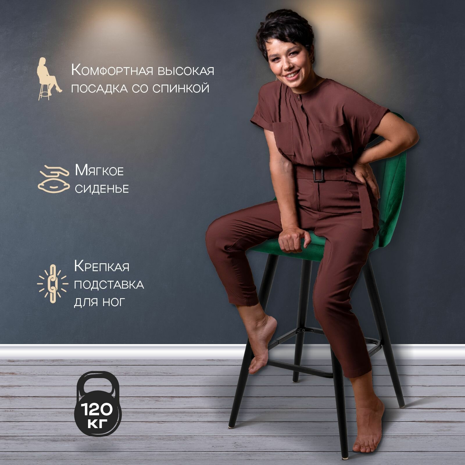 СохранитьБарные стулья для кухни 2 штуки Лондон, кухонные стулья со спинкой, обивка вельвет зеленый, АМИ мебель, Беларусь интересное: