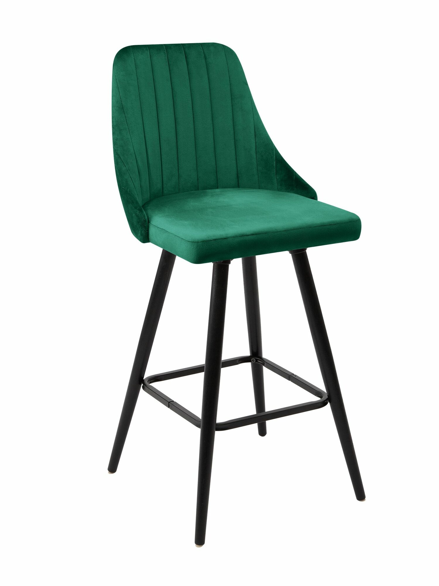 Барный стул со спинкой Лондон, ножки деревянные высокие, мягкий, обеденный для кухни, гостиной, для дома, обивка вельвет зеленый, АМИ мебель, Беларусь