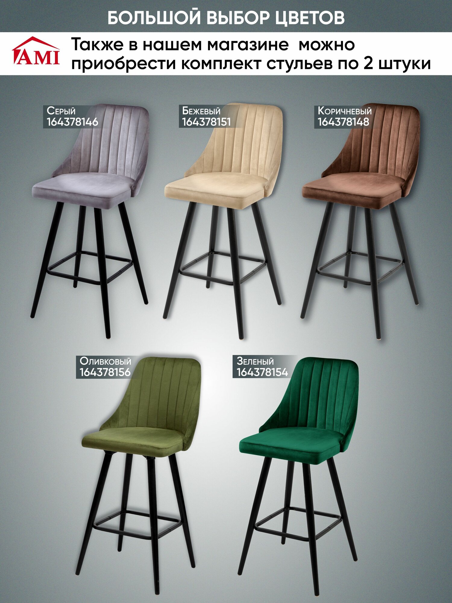 Барные стулья для кухни 2 штуки мягкие Лондон, обеденная группа, для дома, гостиной, кухонные стулья со спинкой, высокие ножки, обивка вельвет оливковый, АМИ мебель, Беларусь