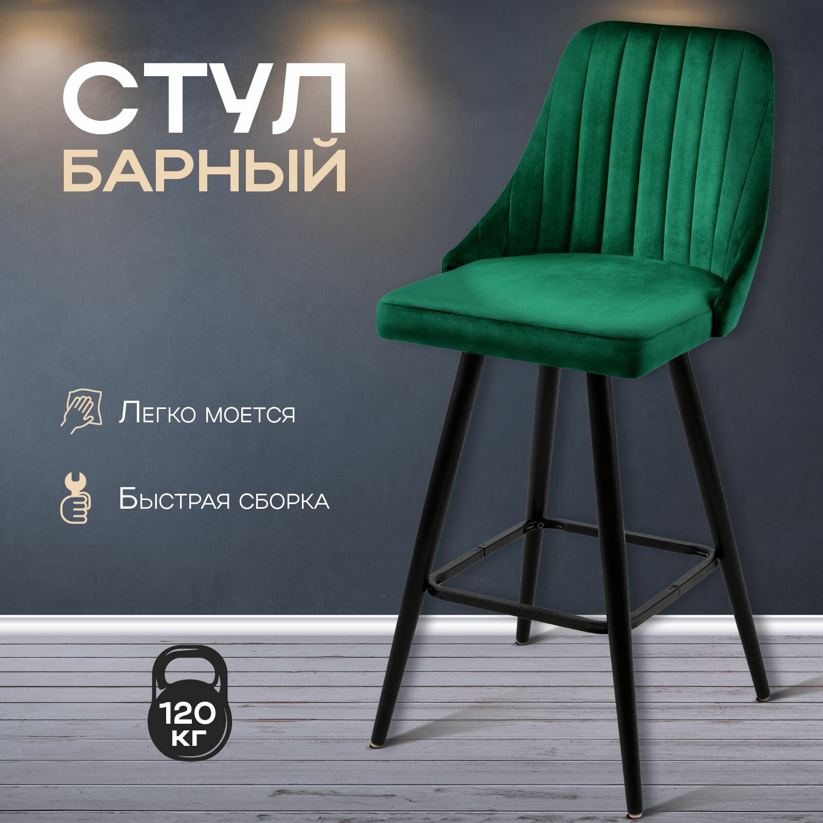 Барные стулья для кухни 2 штуки мягкие Лондон, обеденная группа, для дома, гостиной, кухонные стулья со спинкой, высокие ножки, обивка вельвет зеленый, АМИ мебель, Беларусь