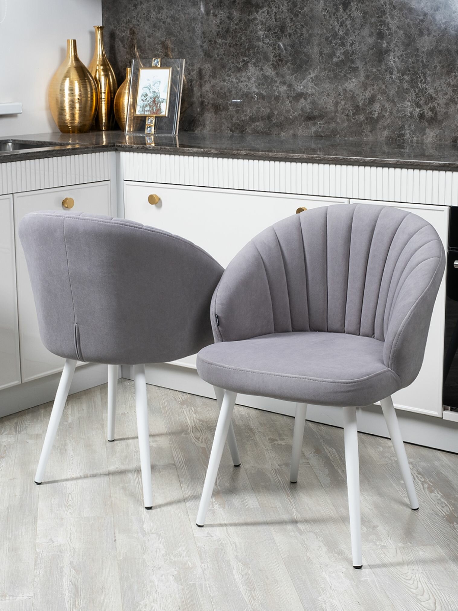 Комплект стульев "Зефир" для кухни серый с белыми ногами, стулья кухонные 2 штуки