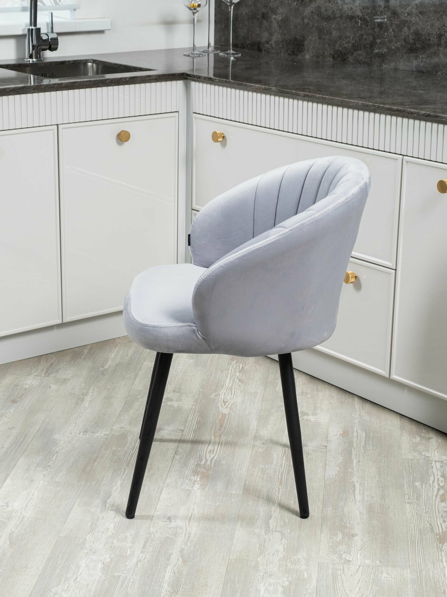 Комплект стульев "Зефир" для кухни серый с золотыми ногами, стулья кухонные 2 штуки