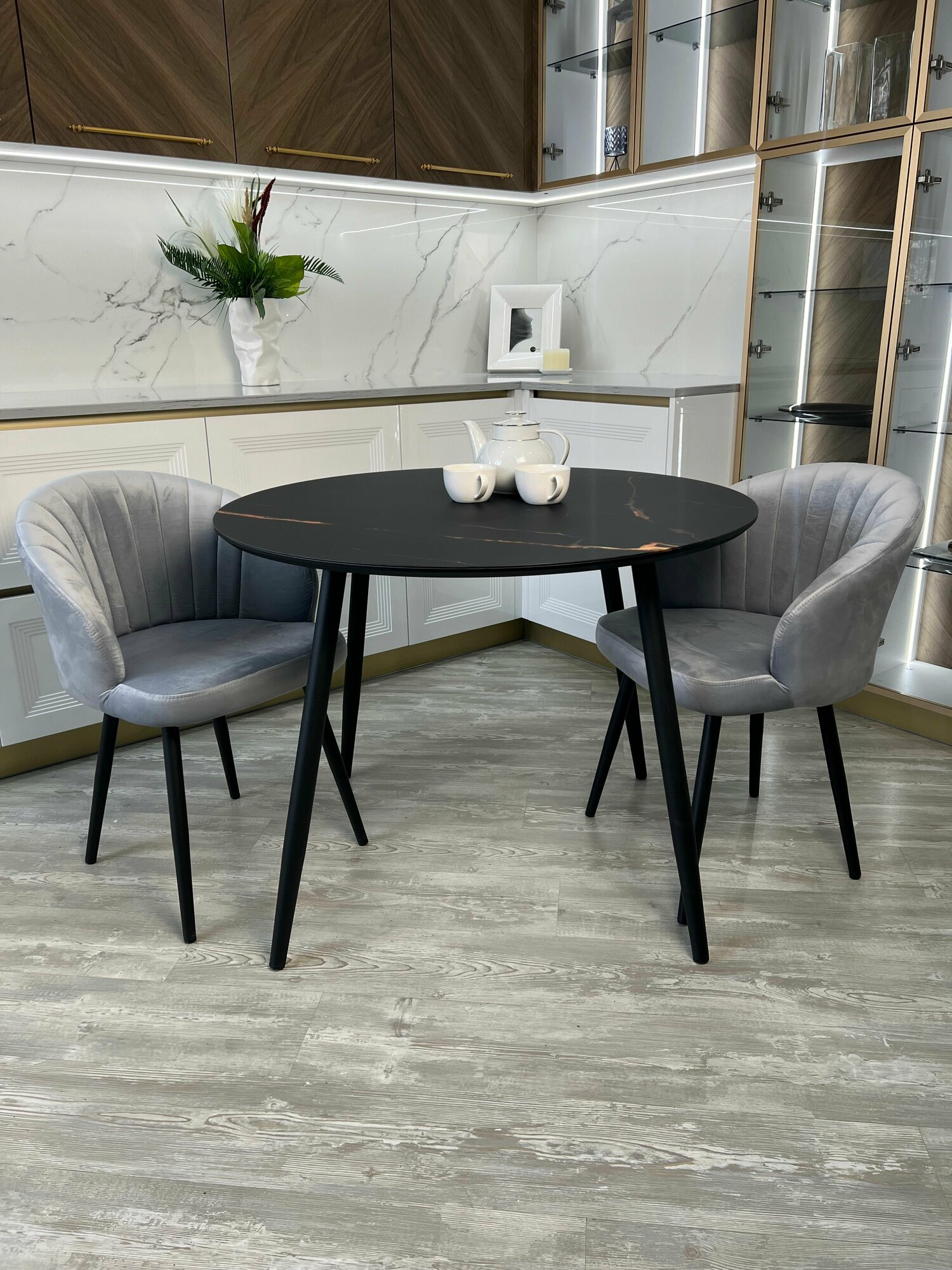 Комплект стульев "Зефир" для кухни темно-серый с золотыми ногами, стулья кухонные 2 штуки