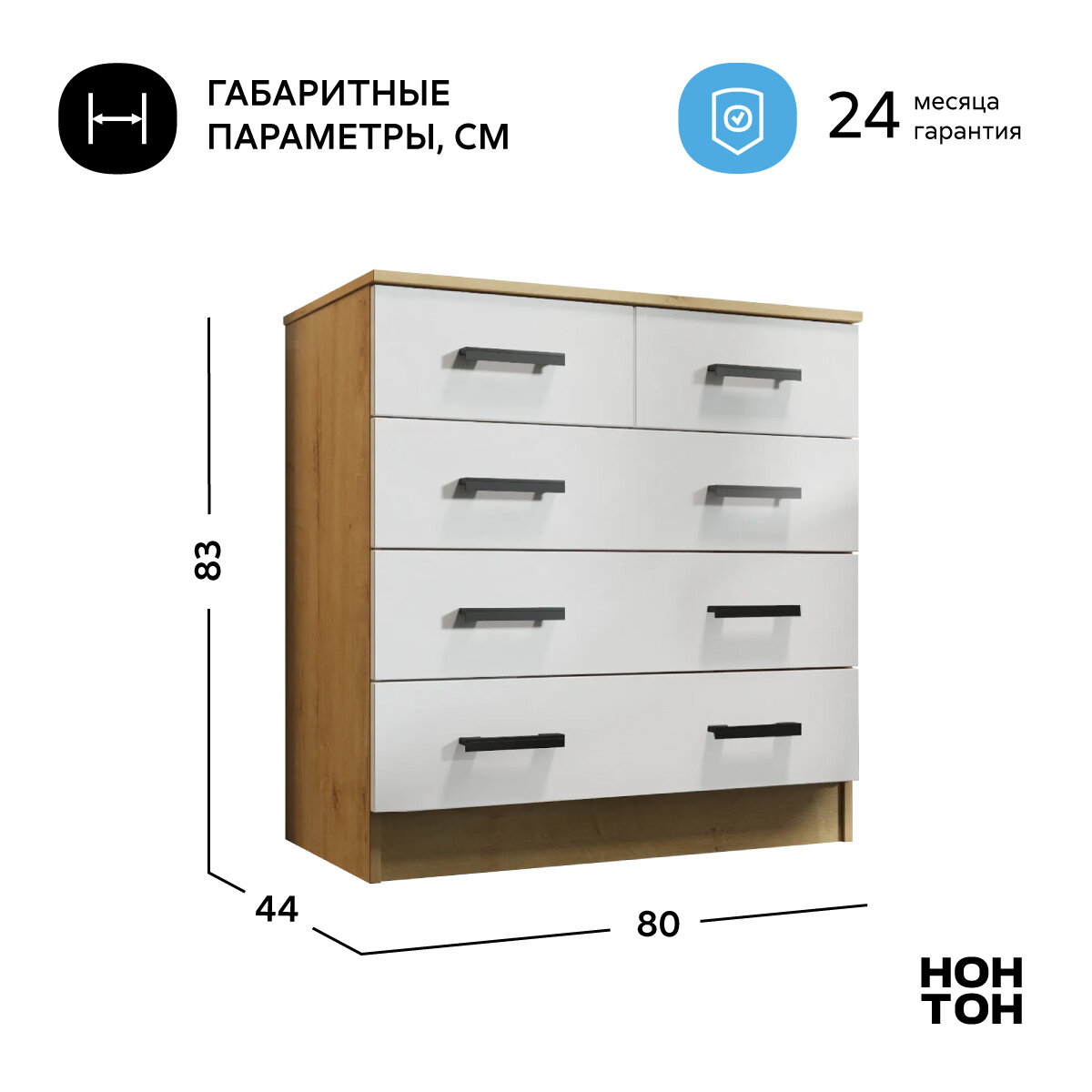 Комод для одежды Прагма 1 с ящиками, 80х44х83 см, Дуб Вотан / Белый гладкий