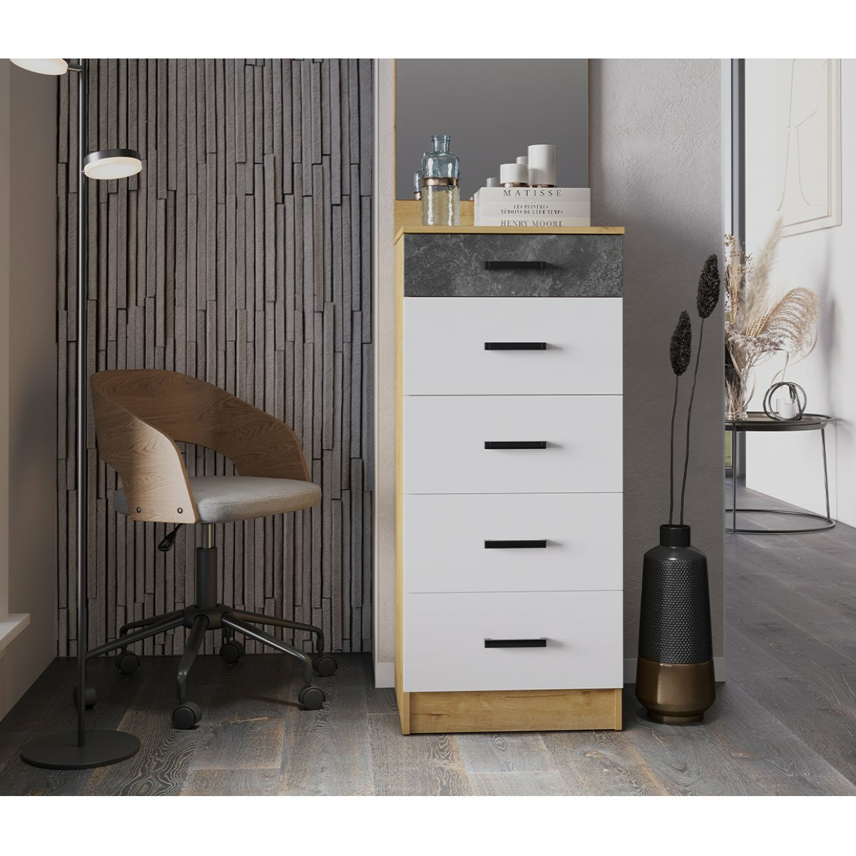 Комод К800-3/2 с 5-ящиками Дуб Вотан/Белый гладкий