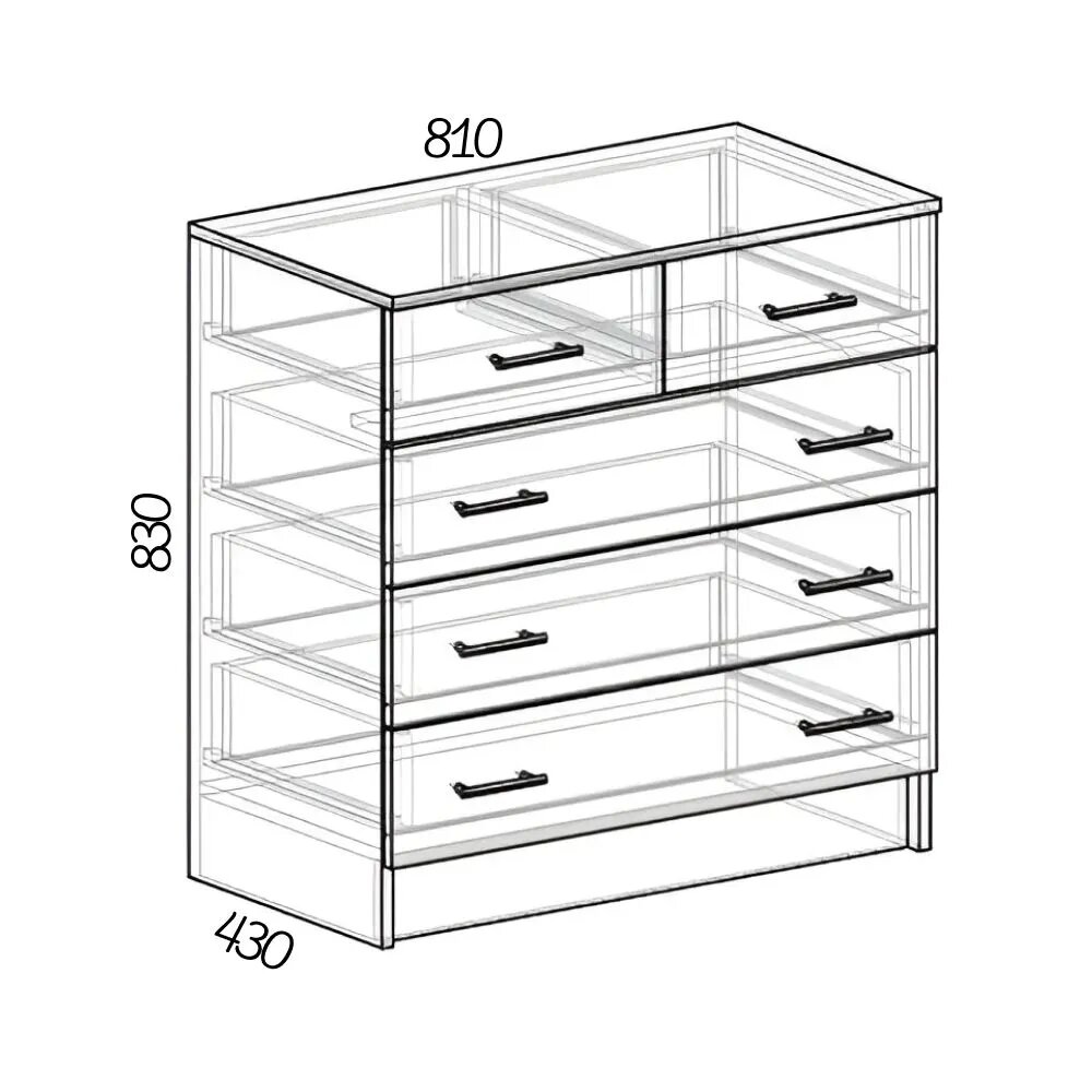 Комод ЛДСП К800 3 больших и 2 маленьких ящика, белый гладкий