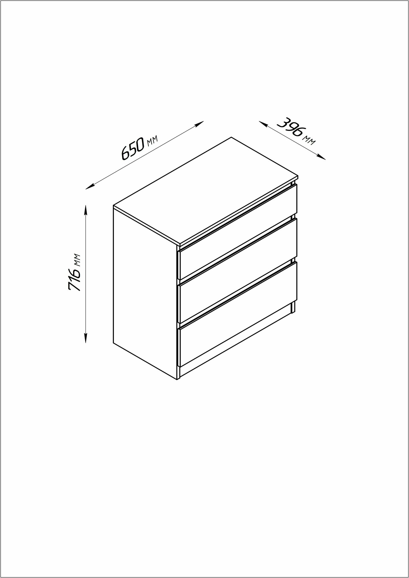 Комод Шведский Стандарт Кастор 3 ящика 650x396x716 мм, дуб сонома